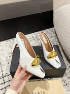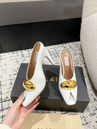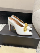 Alaia 25 Azzedine High Heels Mules With Gold Hardware White Calfskin 293186