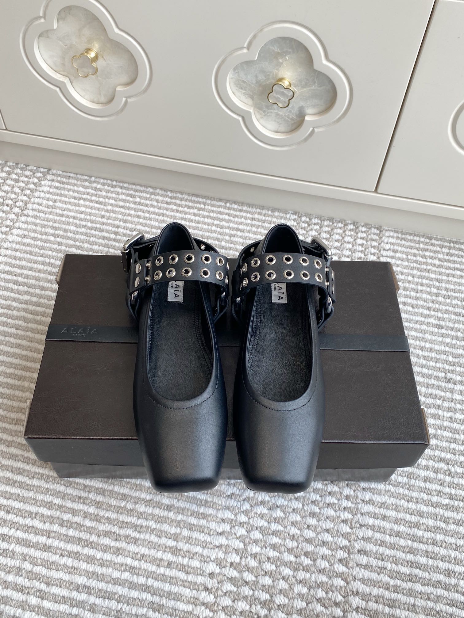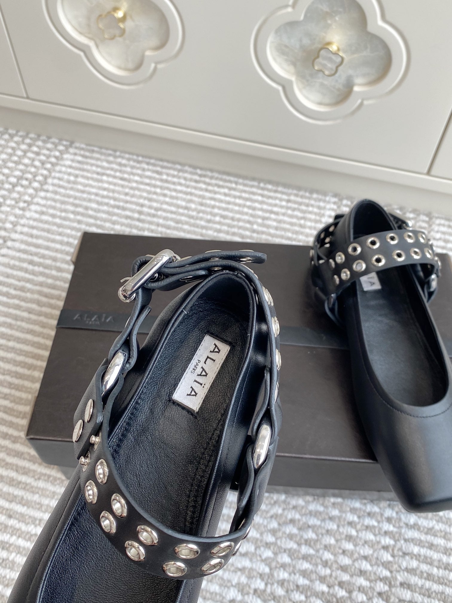 Alaia 25 Biker Ballet Flats Black Calfskin 291055