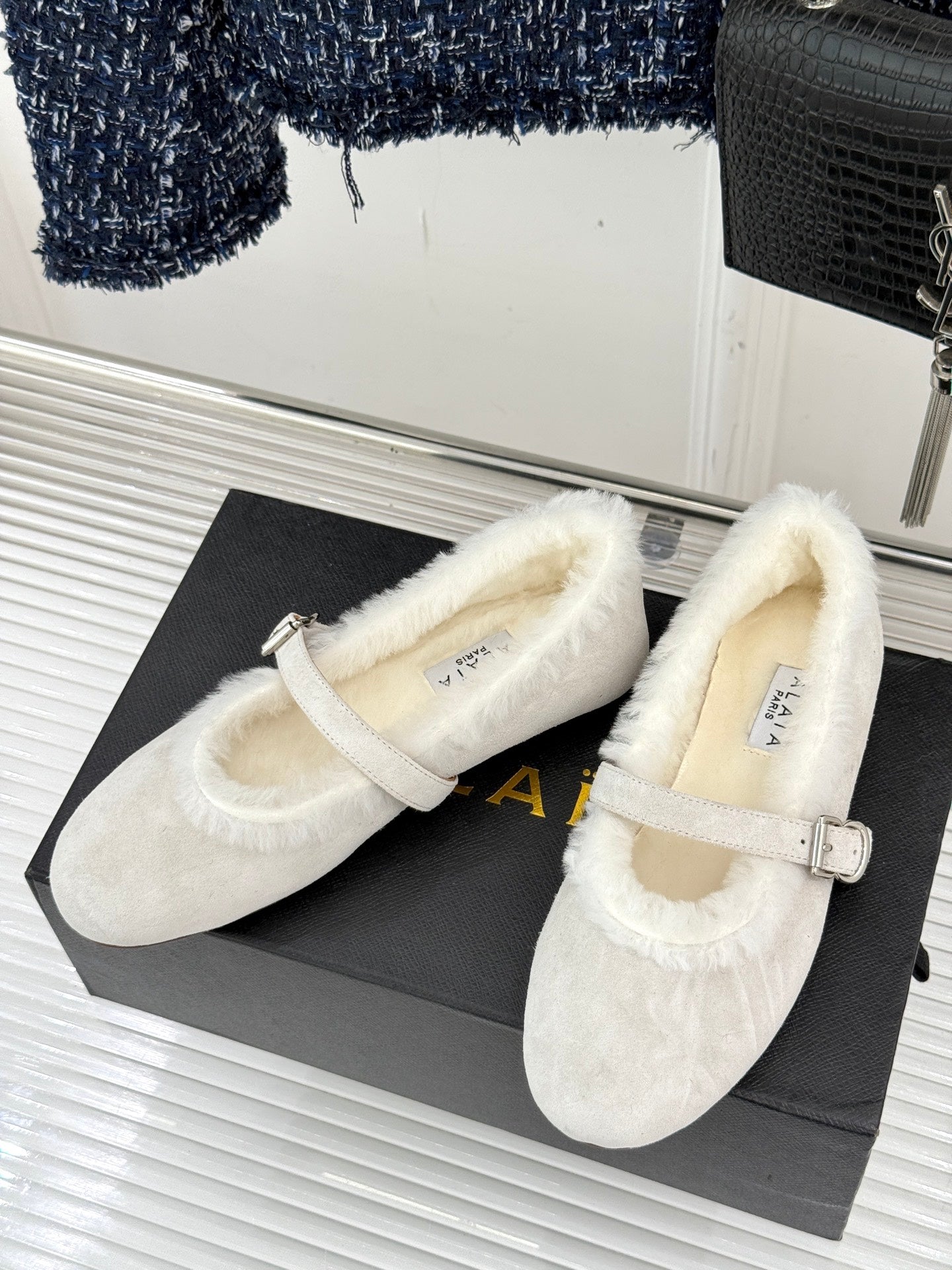 Alaia 25WF Mary Jane white suede wool 472221