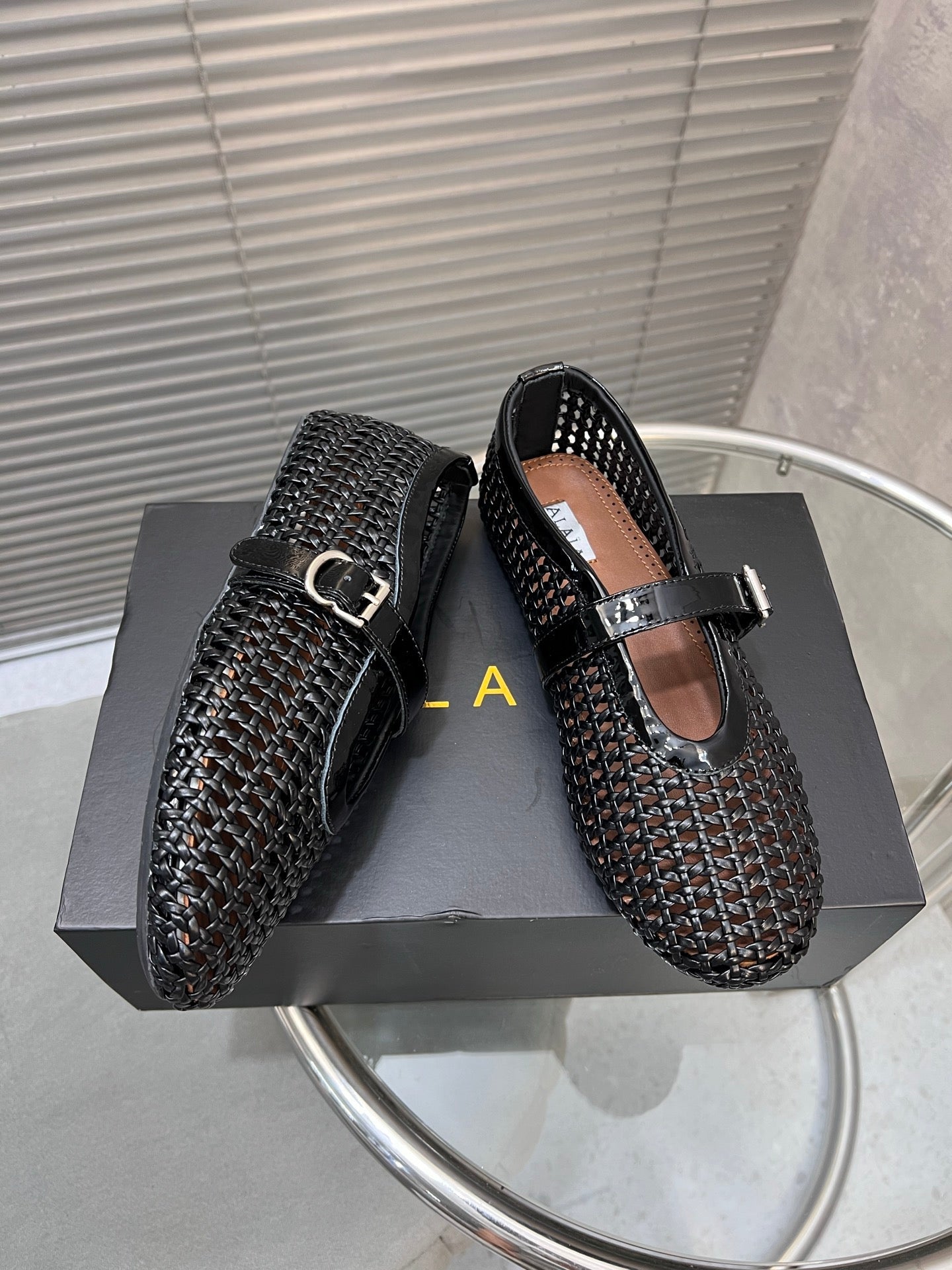 Alaia Braided Hollow Ballet Flats Black Cowhide 300041