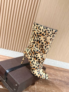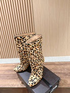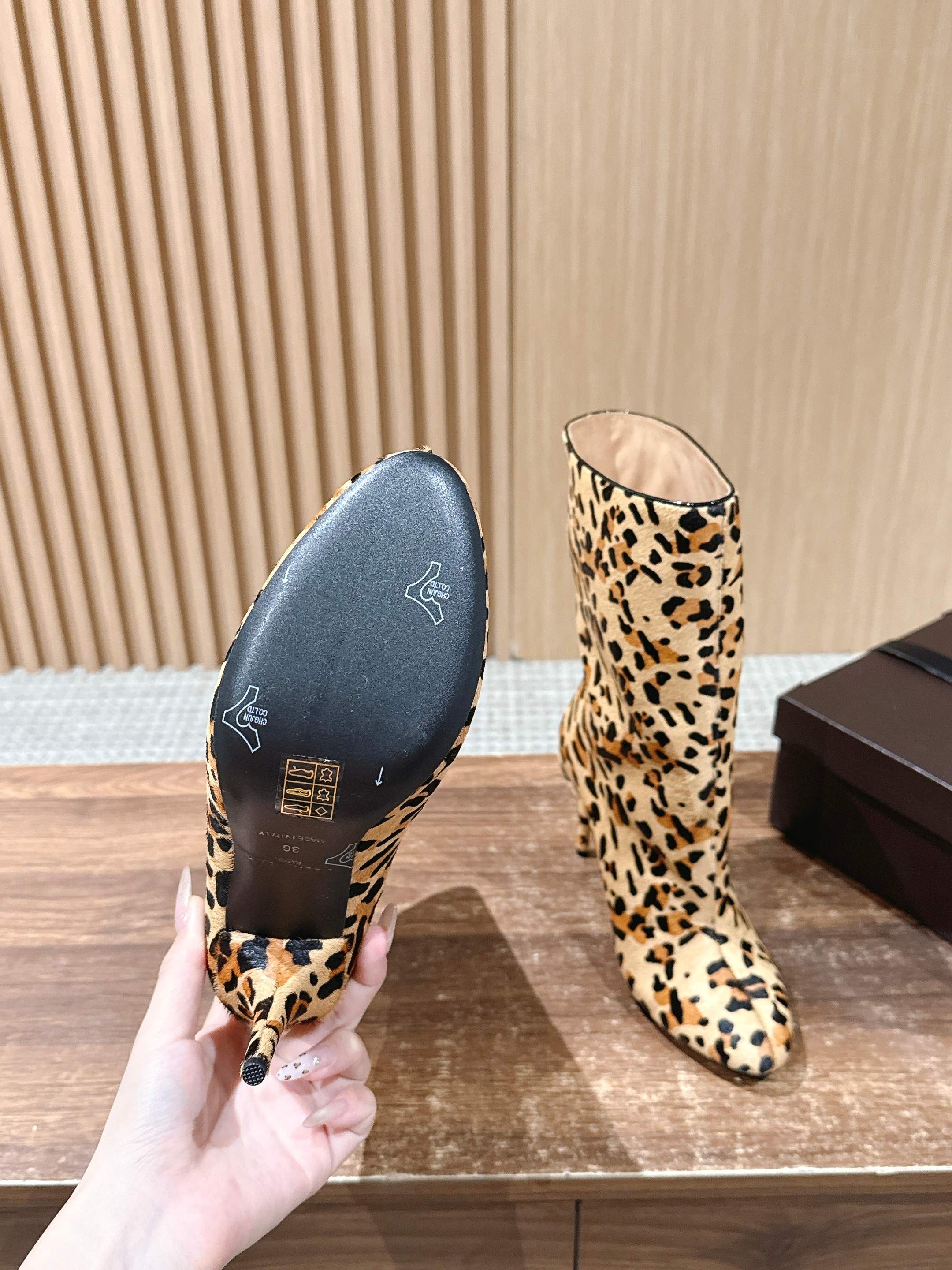 ALAIA high-heeled short boots leopard print velvet 386014