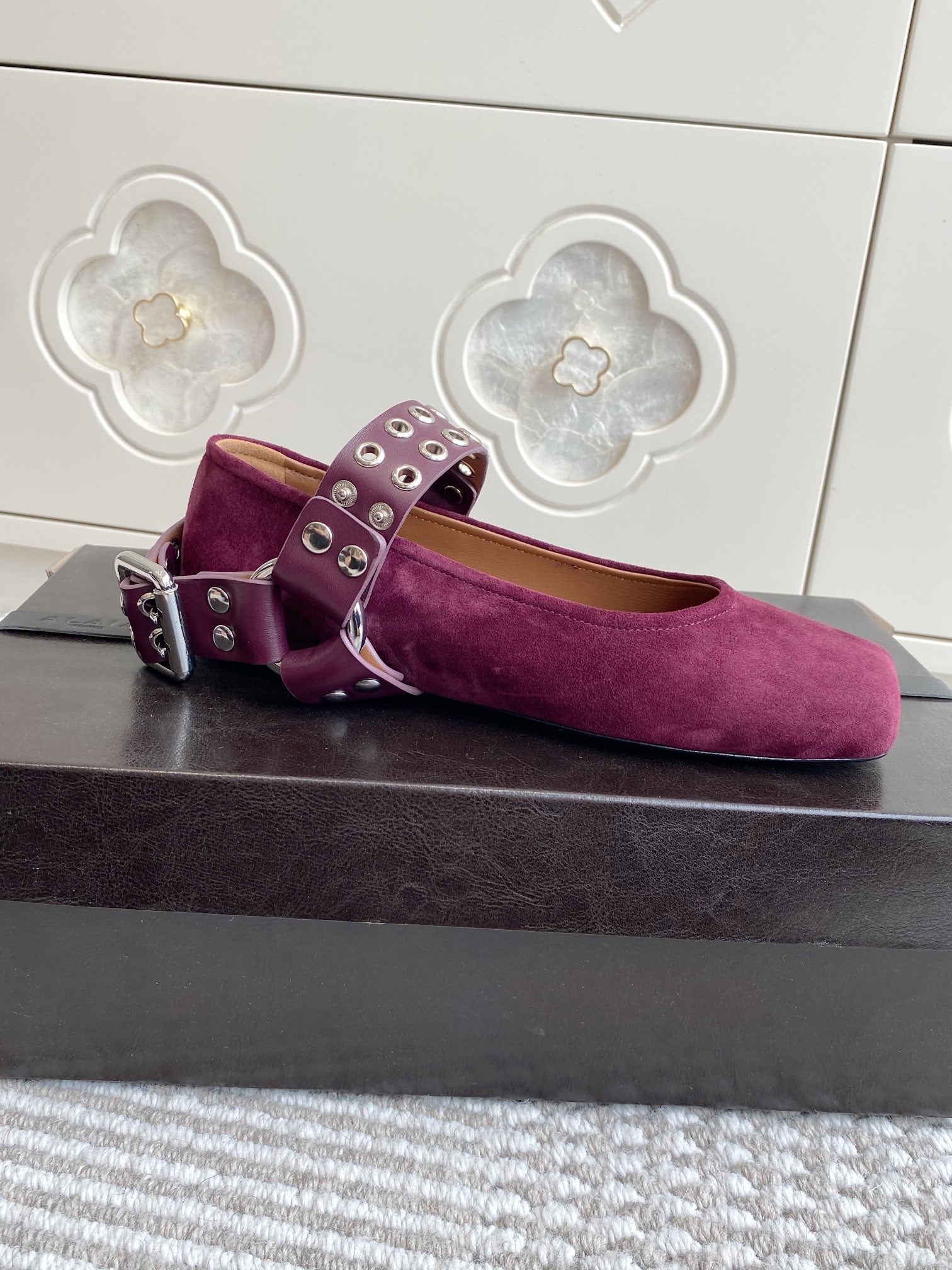Alaia 25 Biker Ballet Flats Purple Suede 291059
