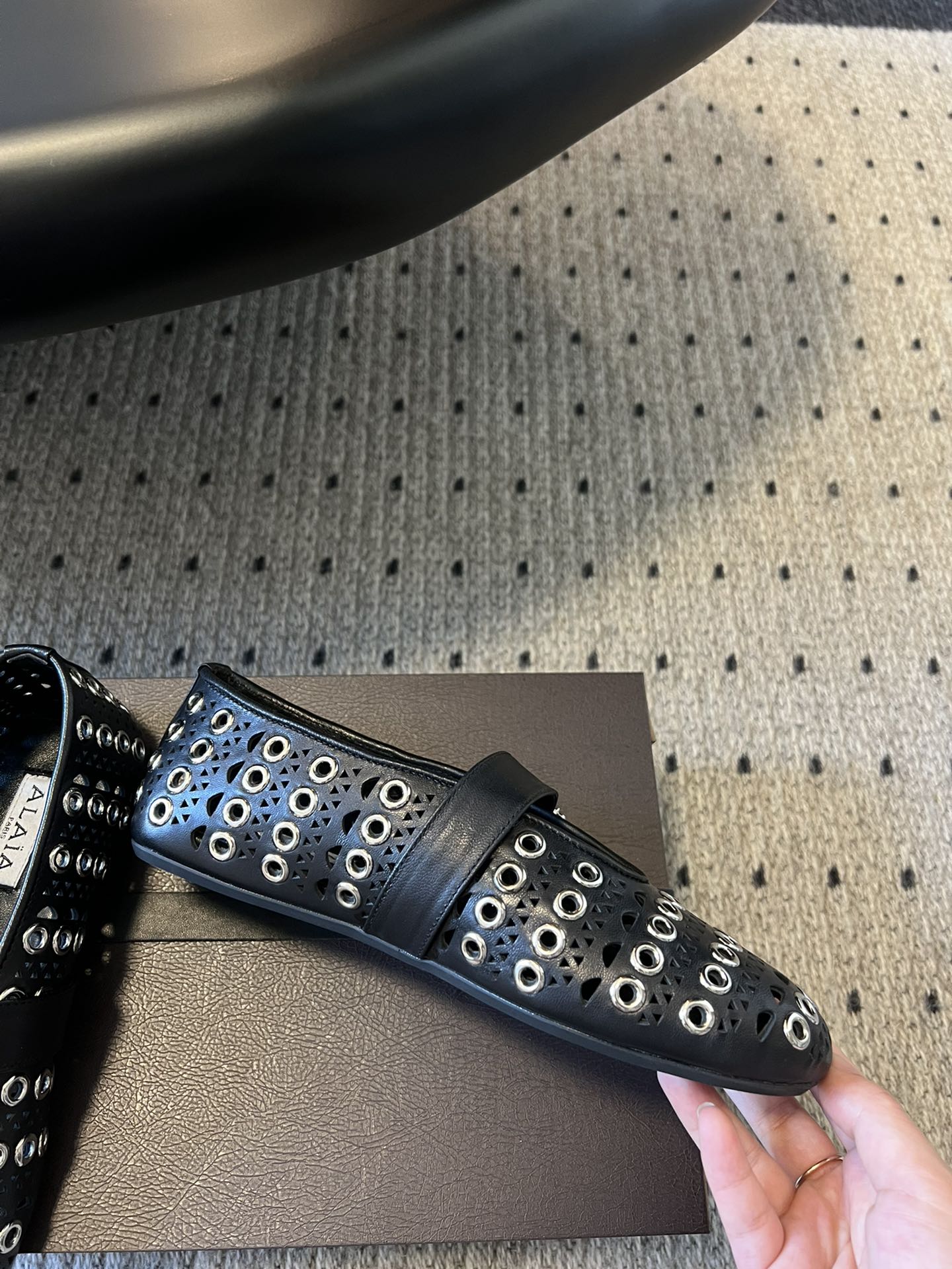 Alaia 25 Vienne With Eyelets Ballet Flats Black Lambskin 303720