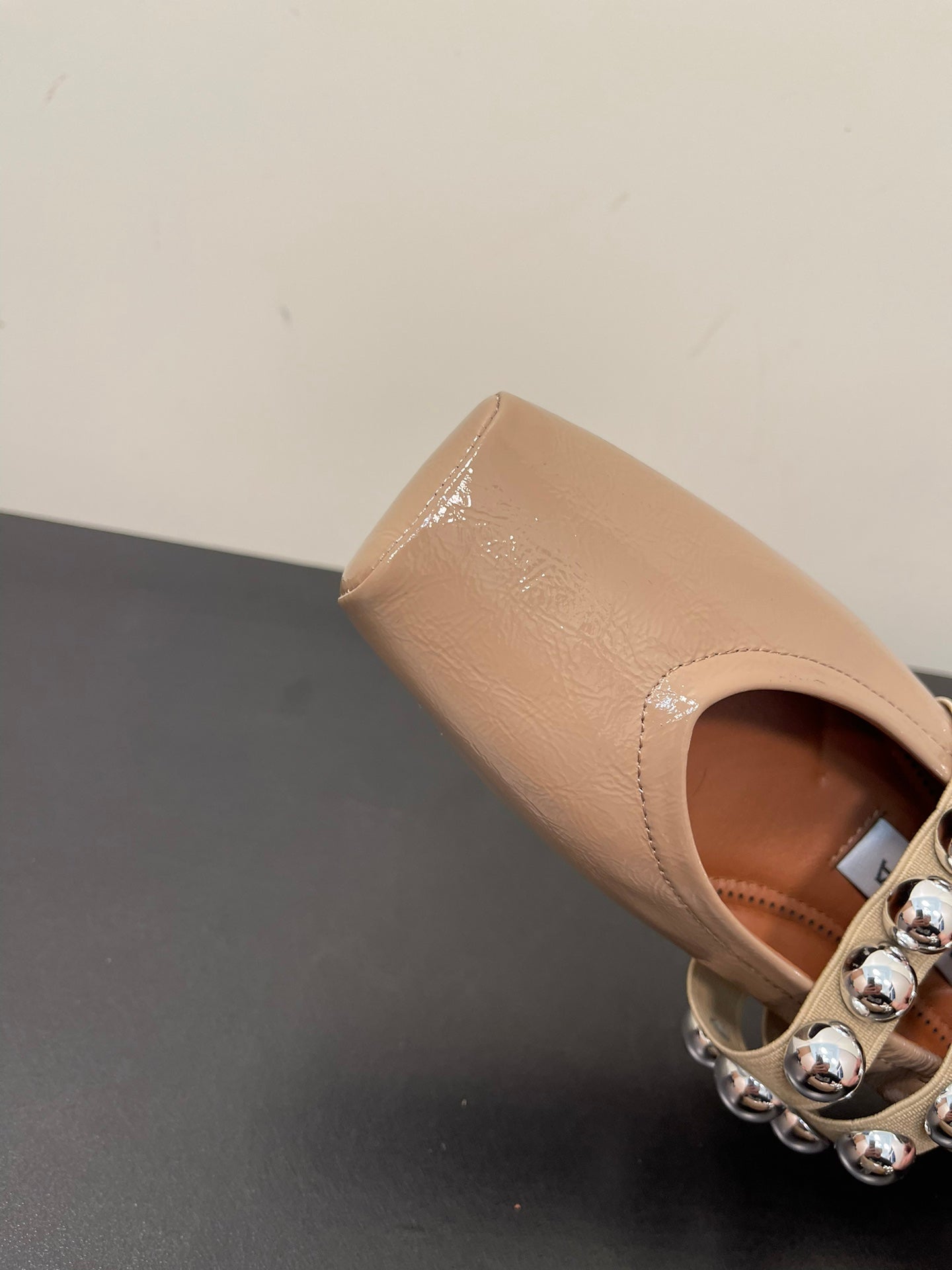 ALAIA BALLET FLATS IN ALMOND BEIGE GLOSSY CALFSKIN WITH SILVER HARDWARE