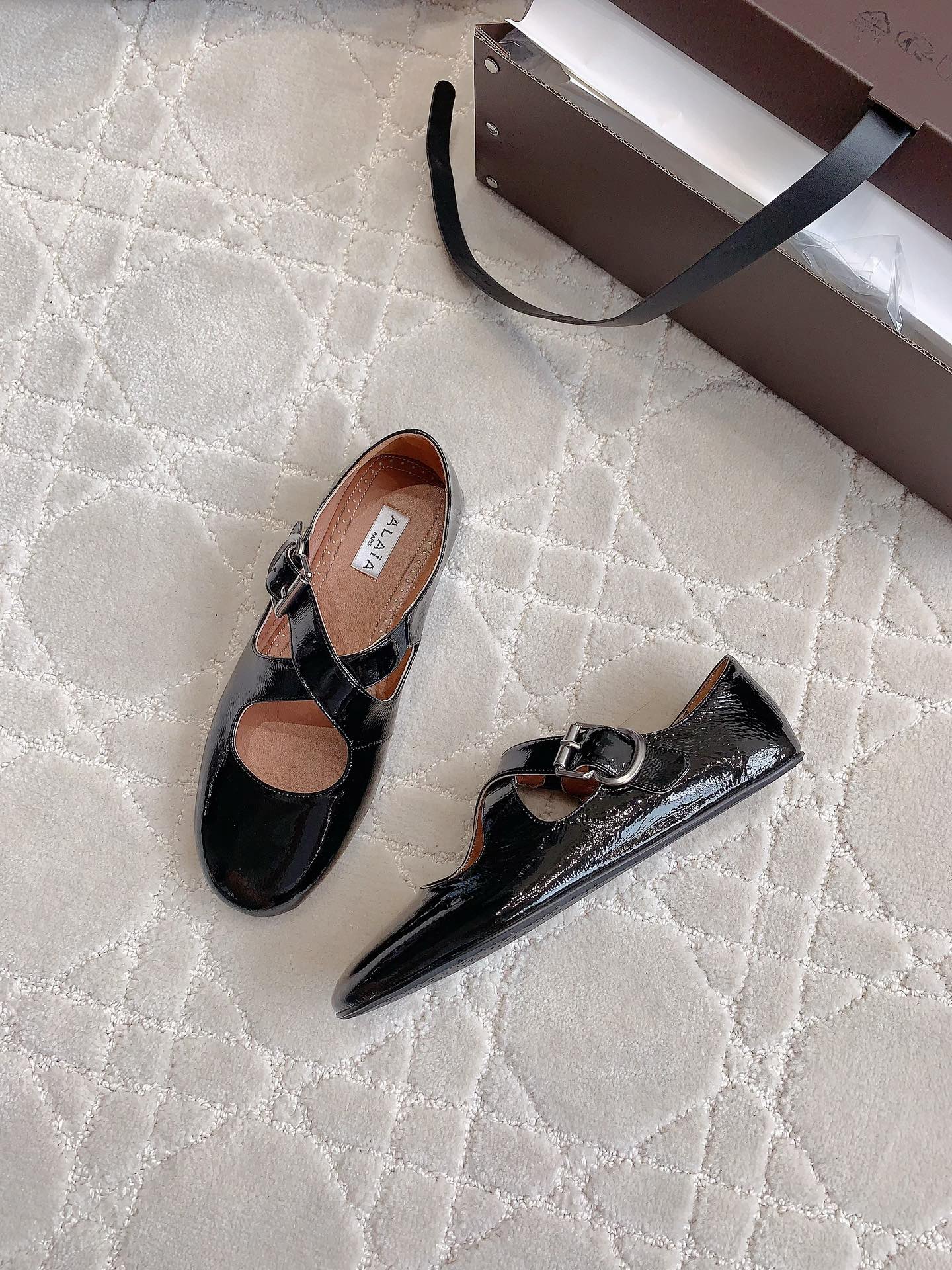 ALAIA CRISS CROSS BALLET FLAT IN BLACK LAMBSKIN WITH SILVER HARDWARE