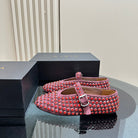 Alaia Strass Suede Ballet Flats In Red Purple 999328