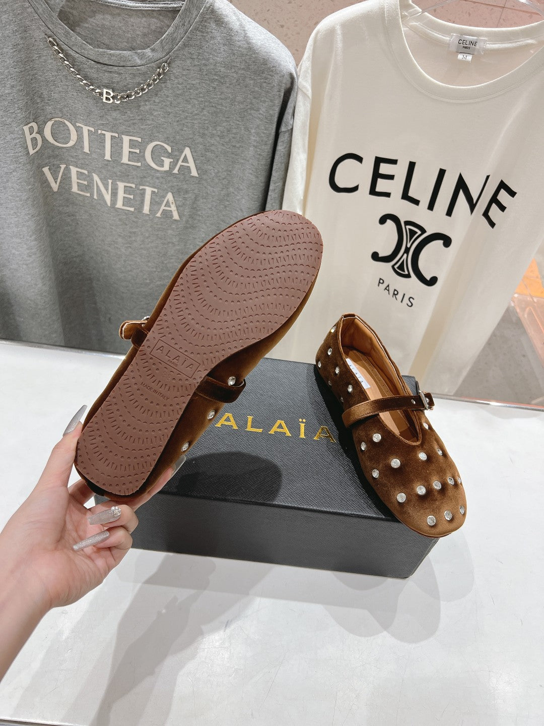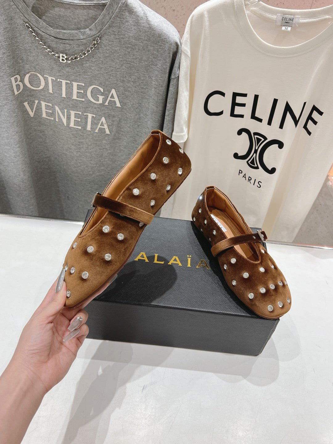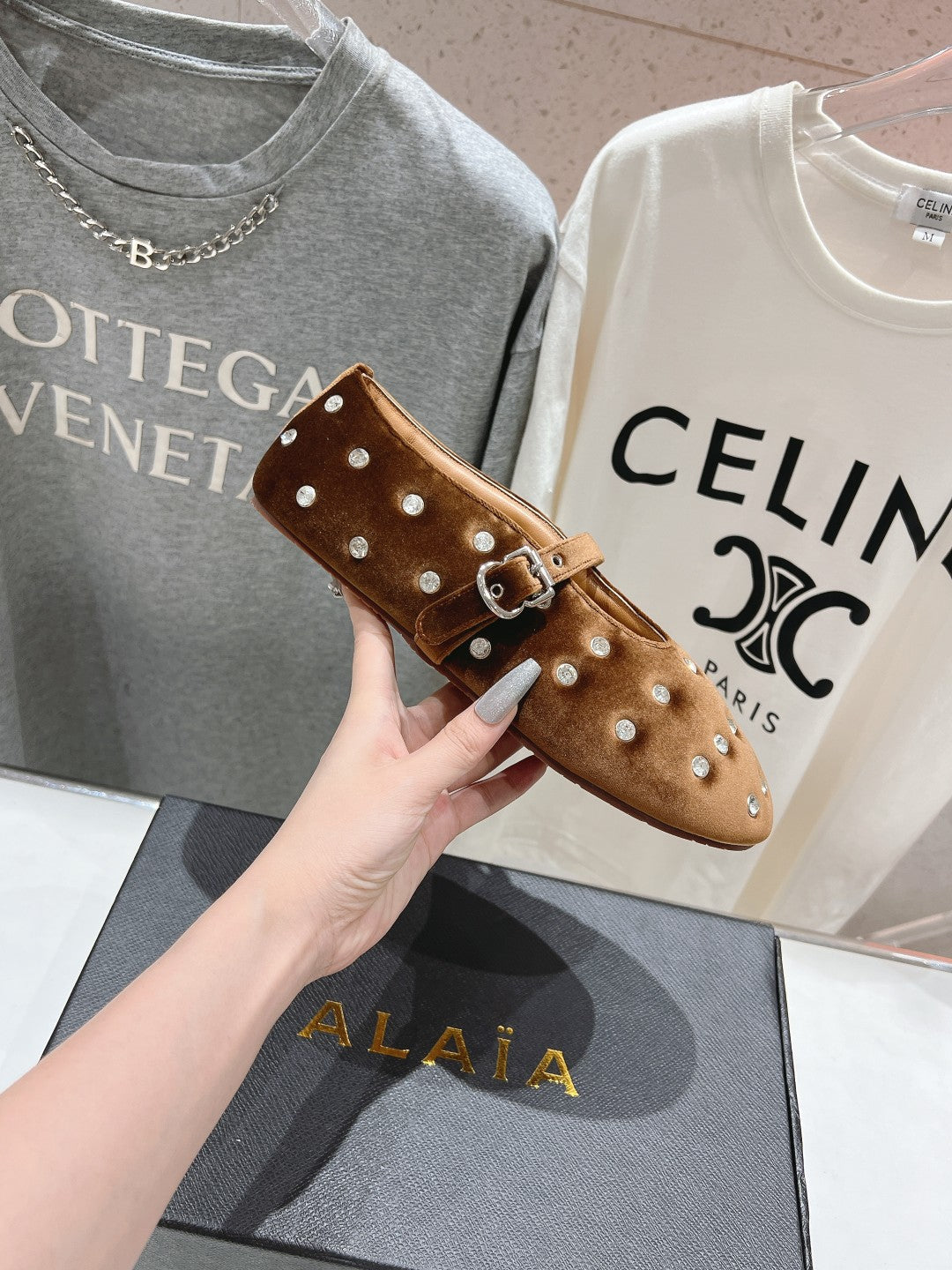 • Material: Velvet With Rhinestones, Lambskin