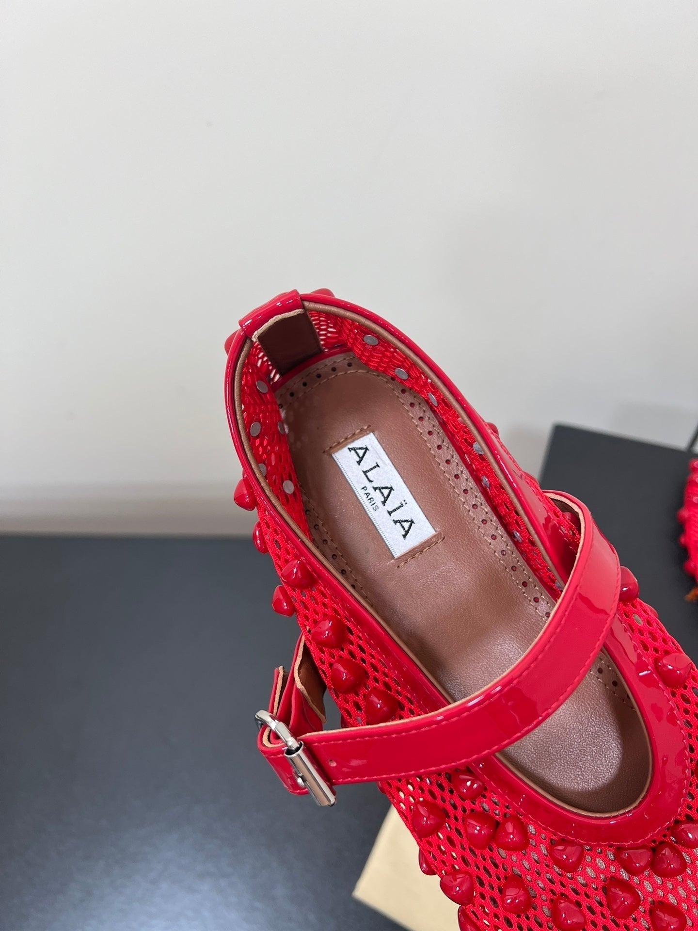 Alaila Ballet Flats With Studs On Fishnet In Red 975749