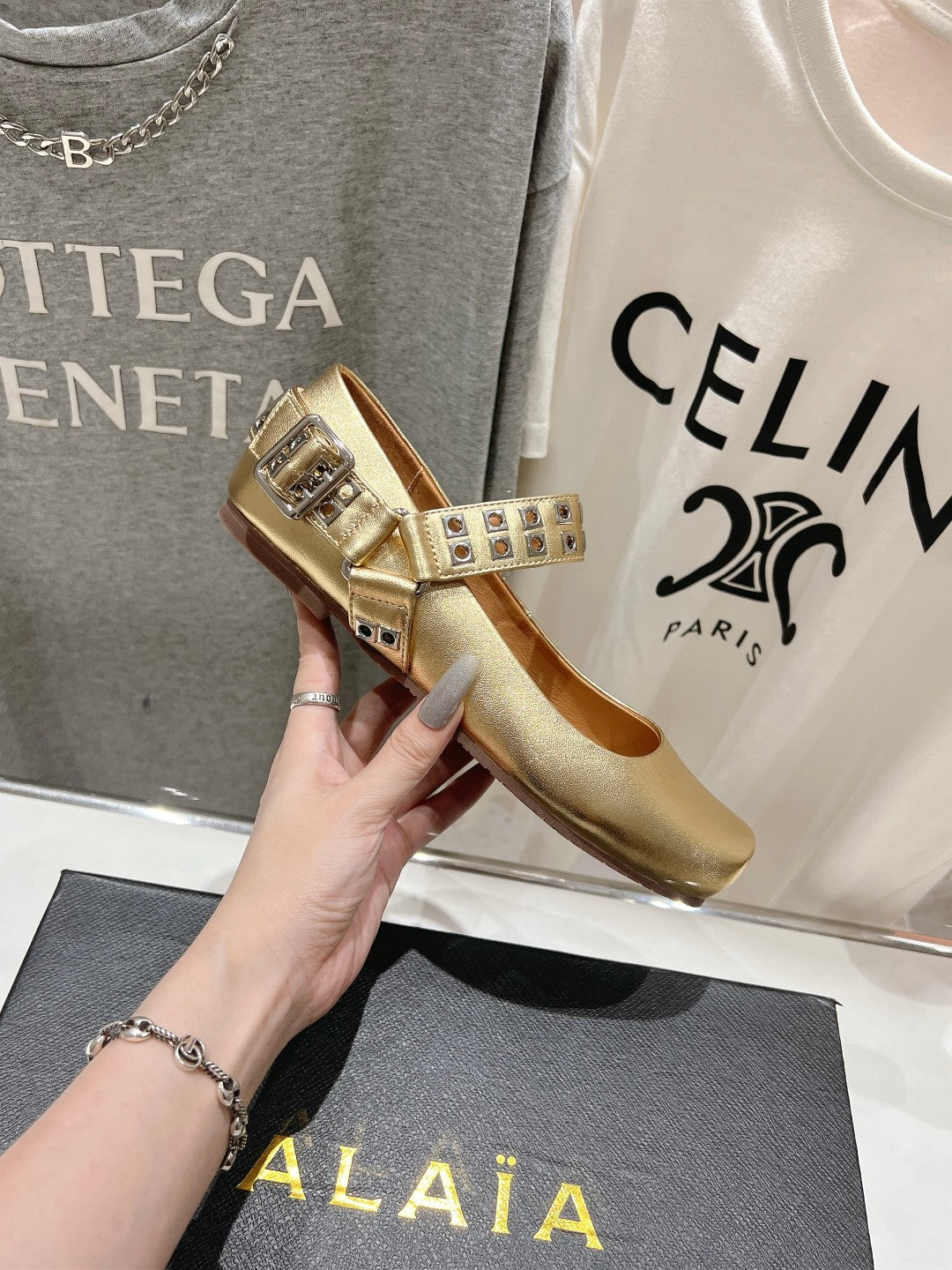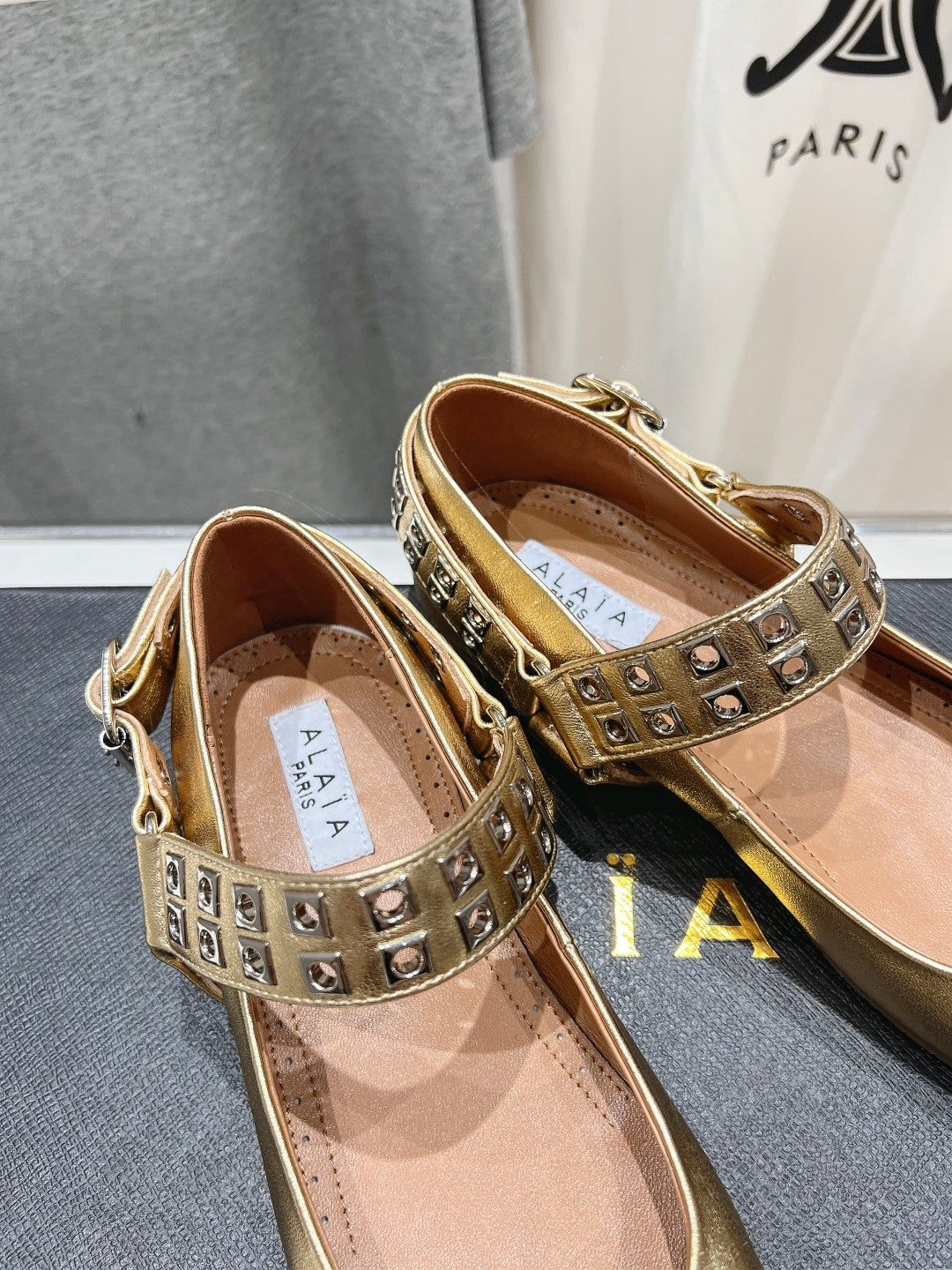 Alaila Biker Ballet Flats In Gold Cowhide 911444