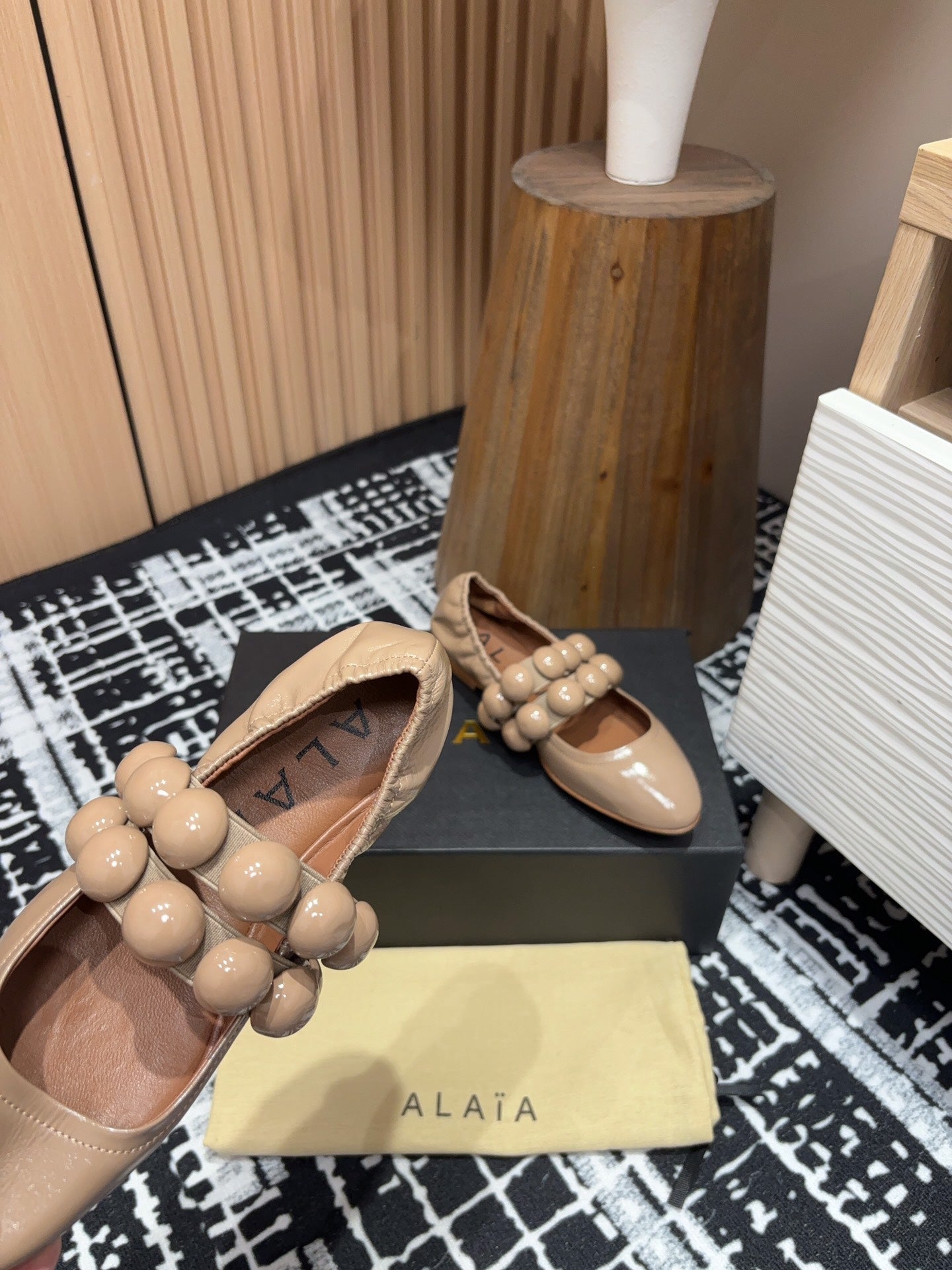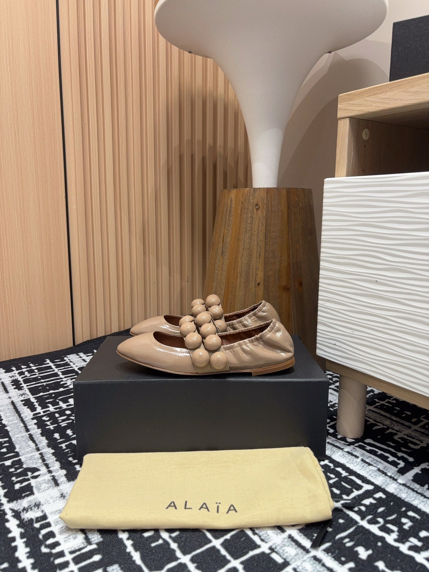 Alaila Sphere Ballet Flats In Beige Glossy Calfskin 964202