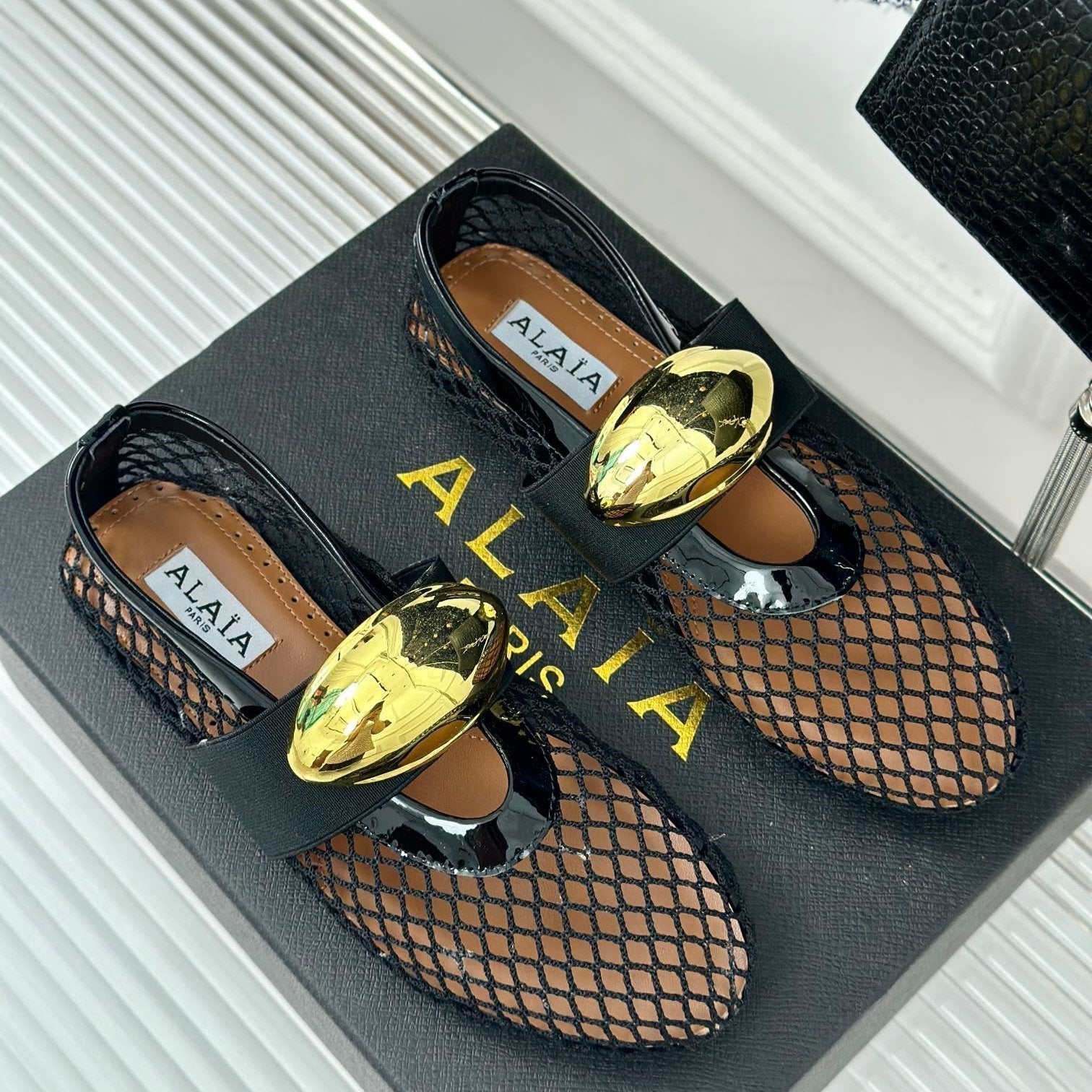 ballet flat jewel fishnet black lambskin