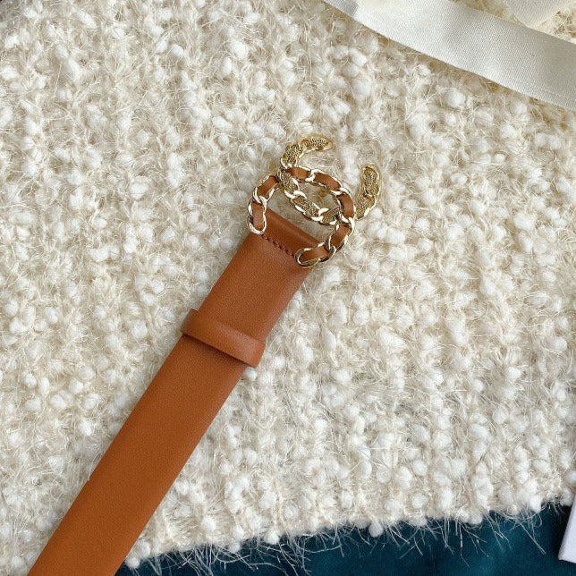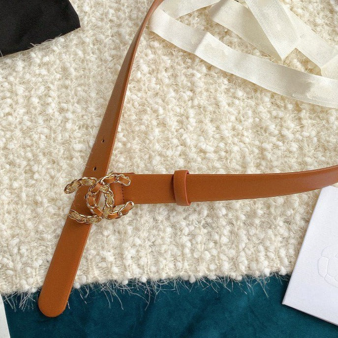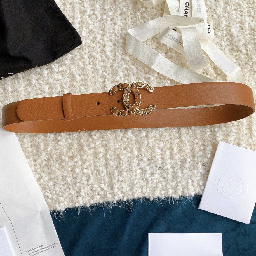 CC WOMEN'S BELT 3.0CM BUCKLE MULTICOLOR LEATHER BROWN