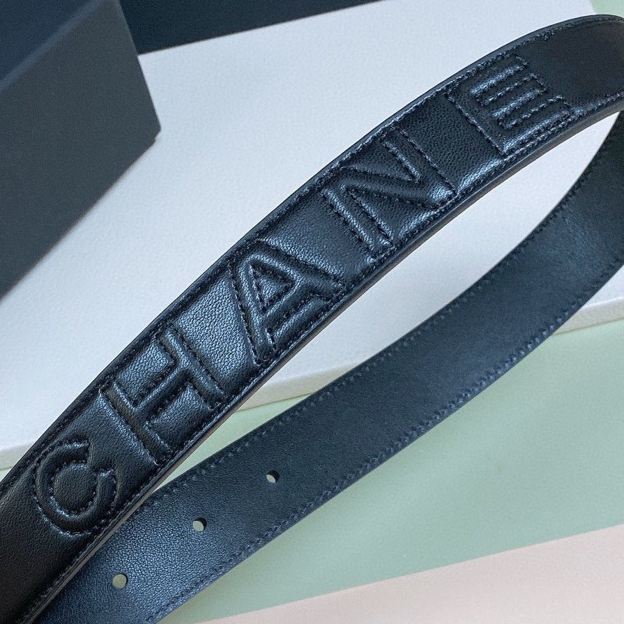 CC WOMEN'S BELT 3.0CM BUCKLE PINK GOLD CARO LEATHER BLACK