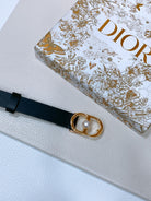 CD Montaigne Belt 20mm Black Calfskin Pearl Gold Buckle