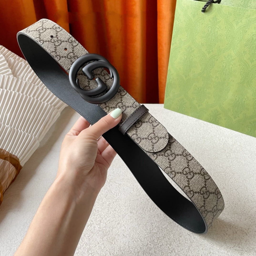 DOUBLE G BLACK BUCKLE 40MM BEIGE CANVAS