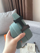 H CONSTANCE REVERSIBLE BELT 38MM BLACK BUCKLE BLACK SKY BLUE LEATHER