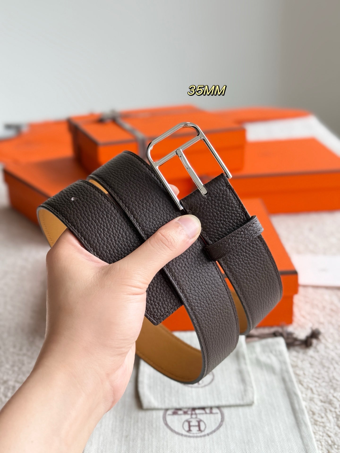 HM 35mm Romain Belt Ebony Leather 188400