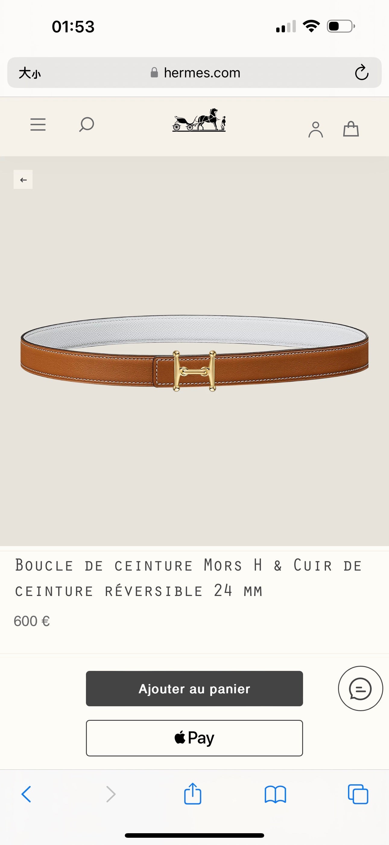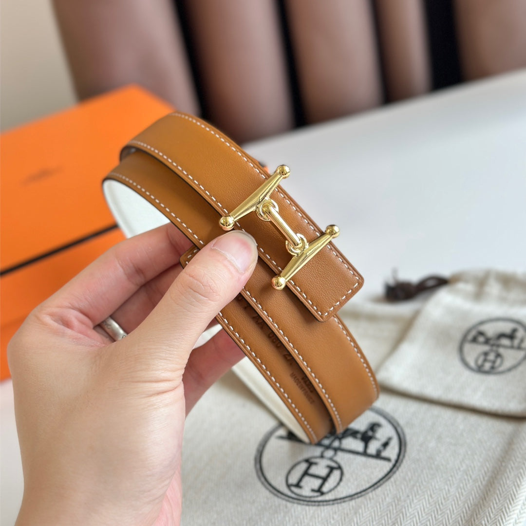 HM Gold Mors H buckle & Reversible 24 mm belt Brown White leather 125364