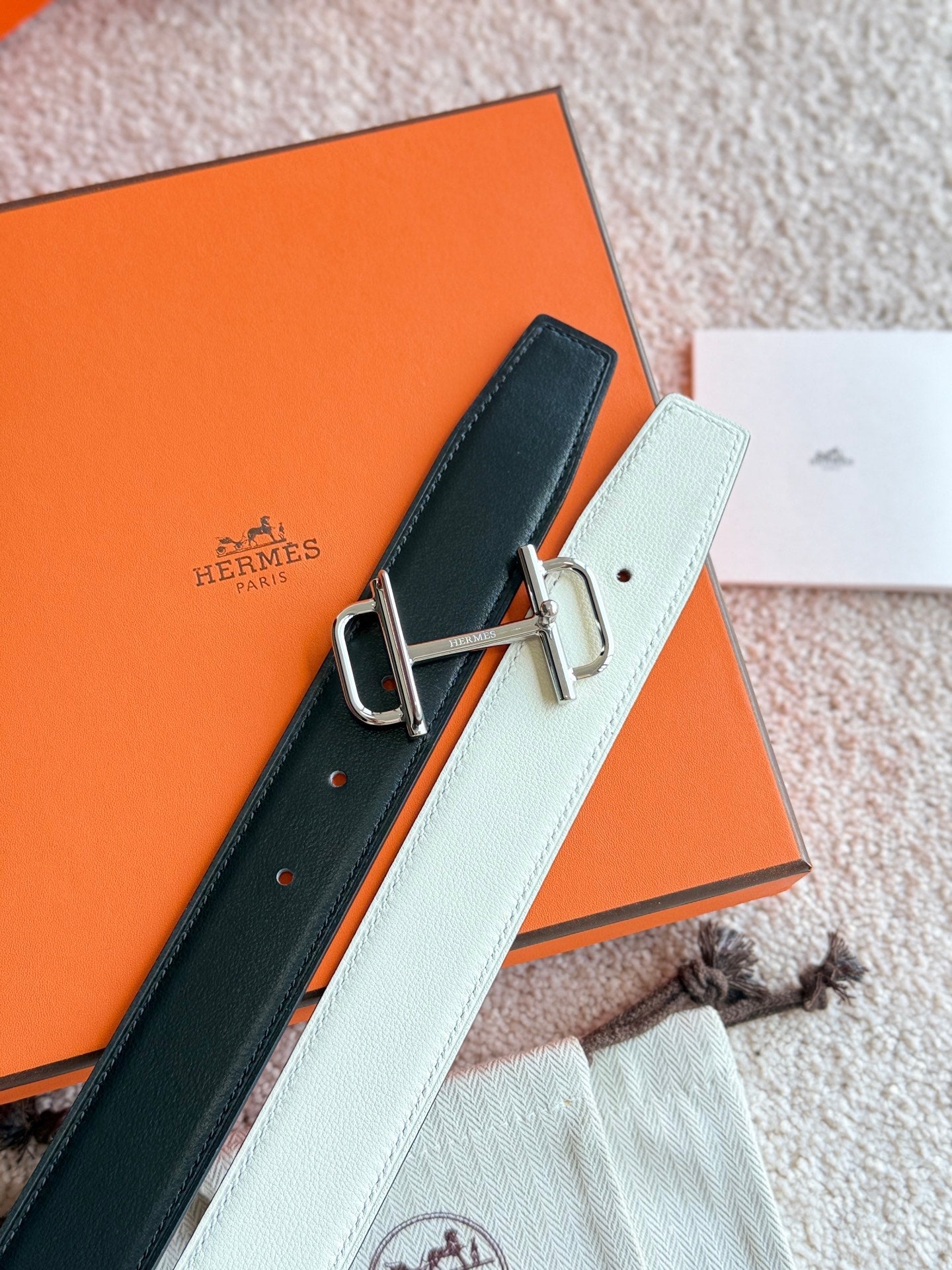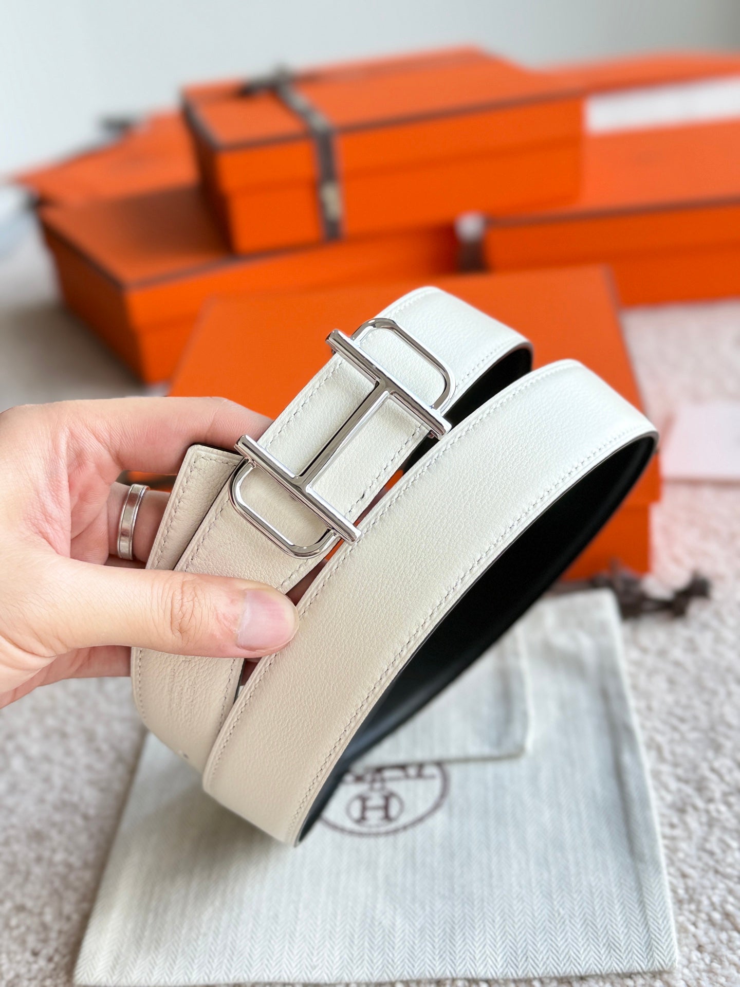HM Silver Buckle 32mm Royal Belt Ivory Leather 188424