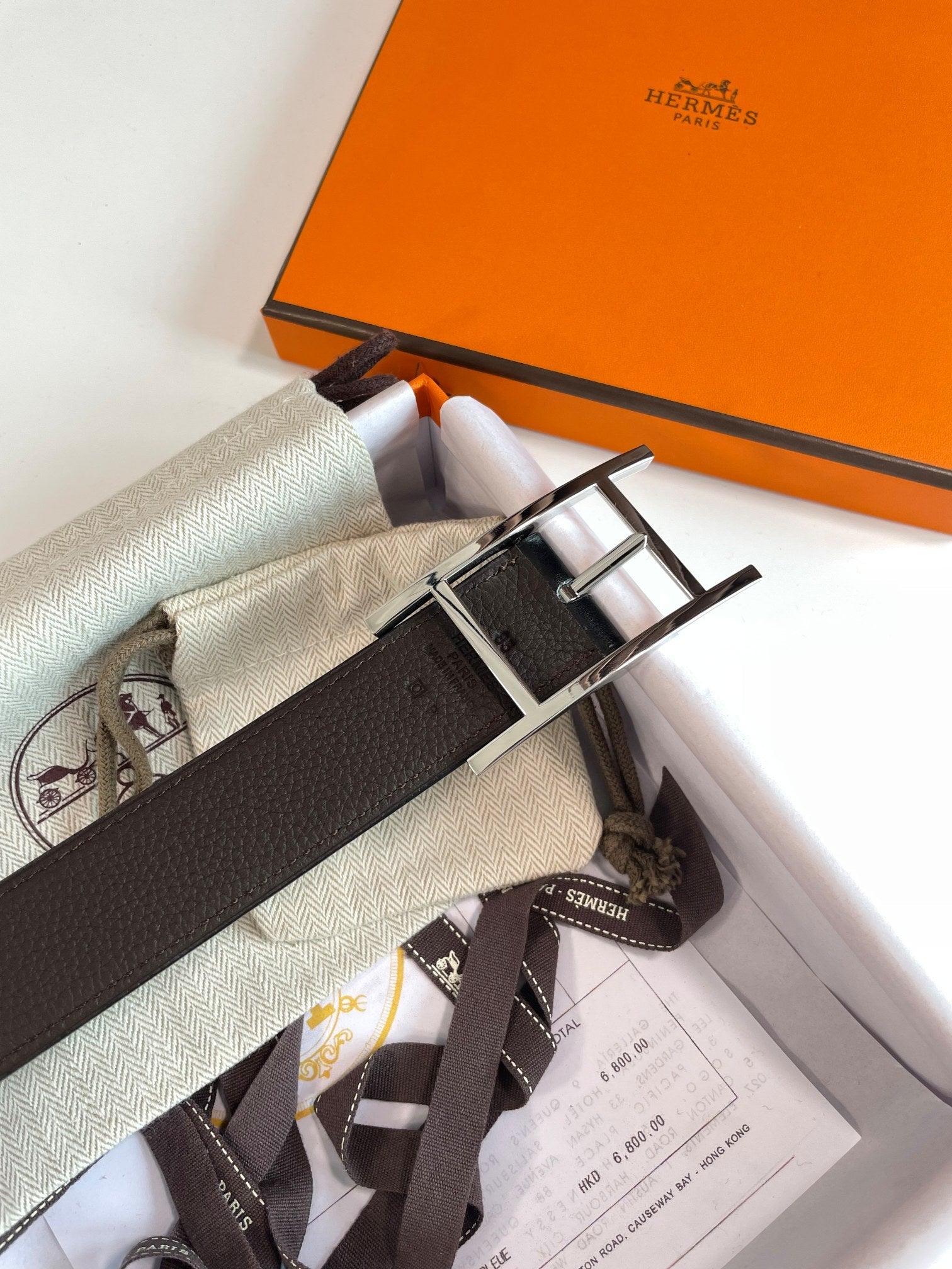 HM Silver Quentin Reversible 32mm Belt Black Chocolate Leather 187794