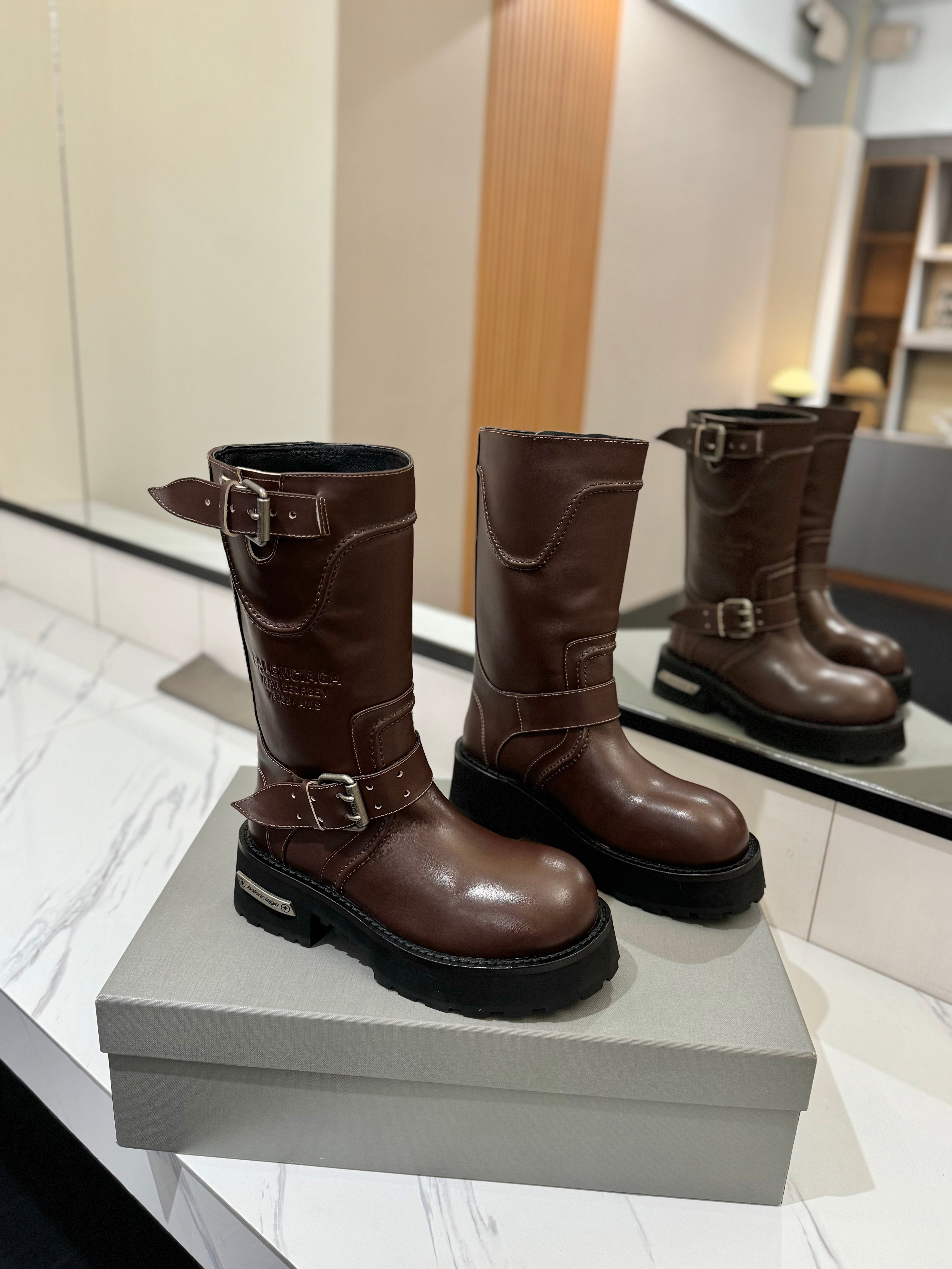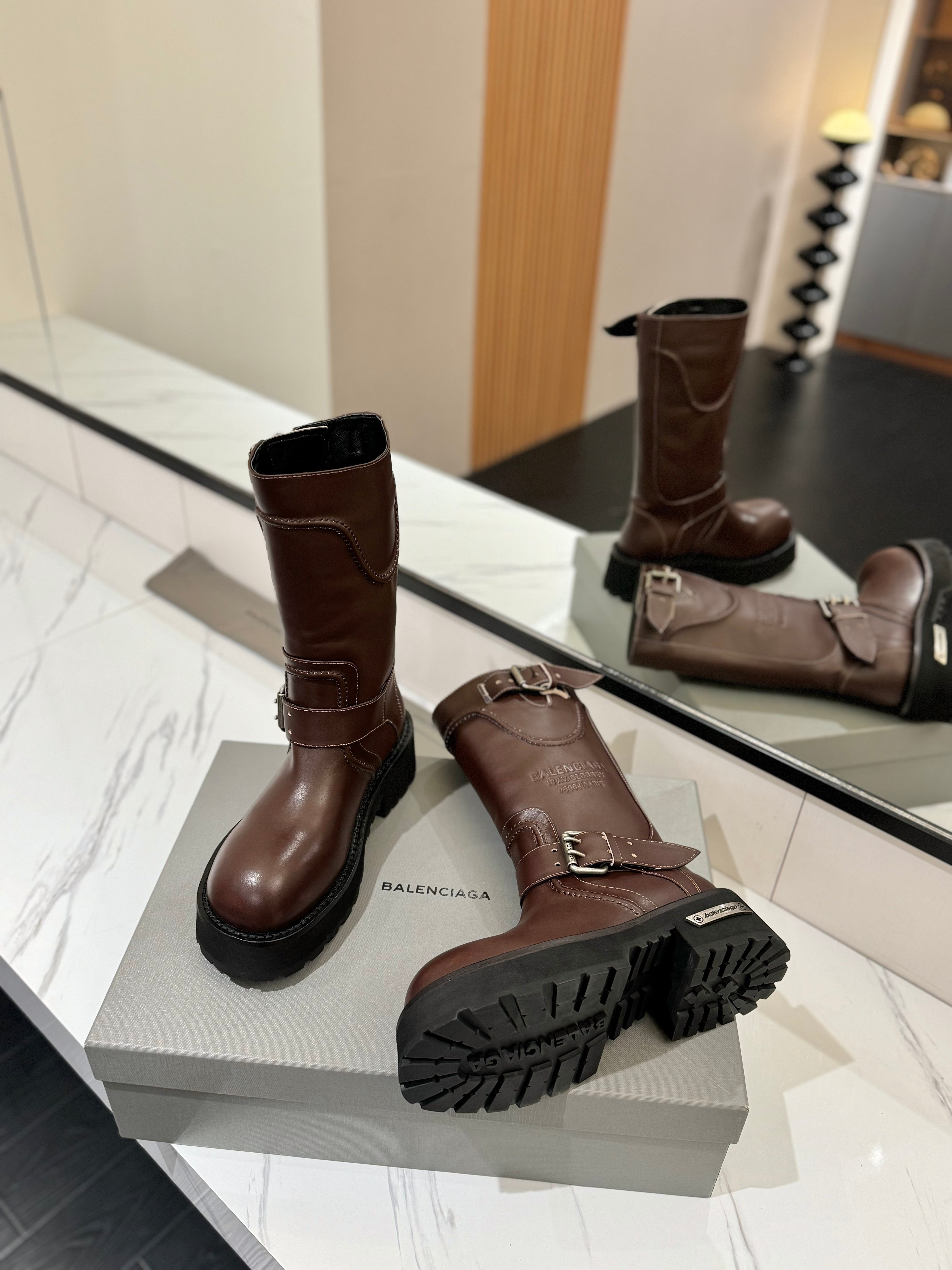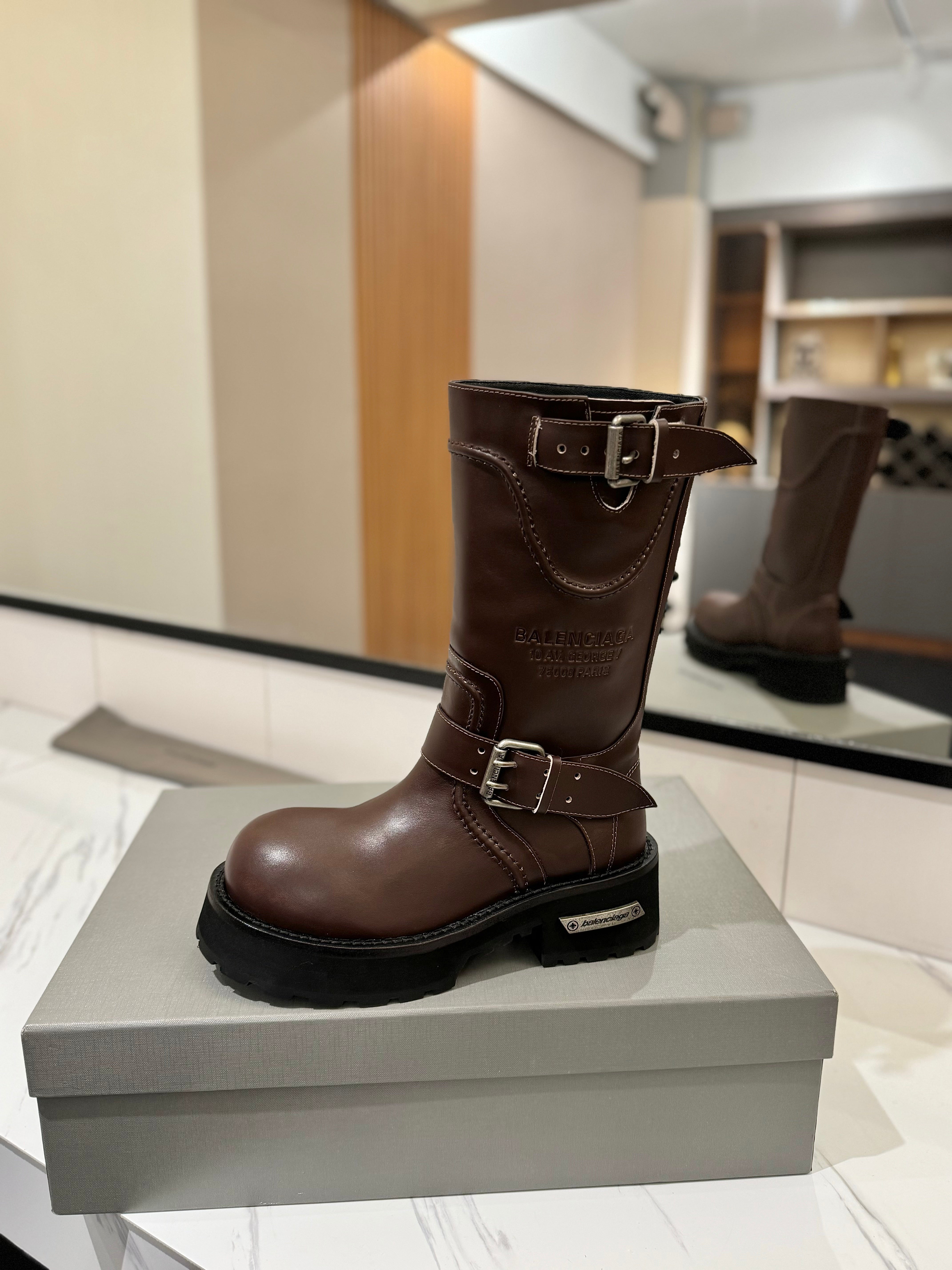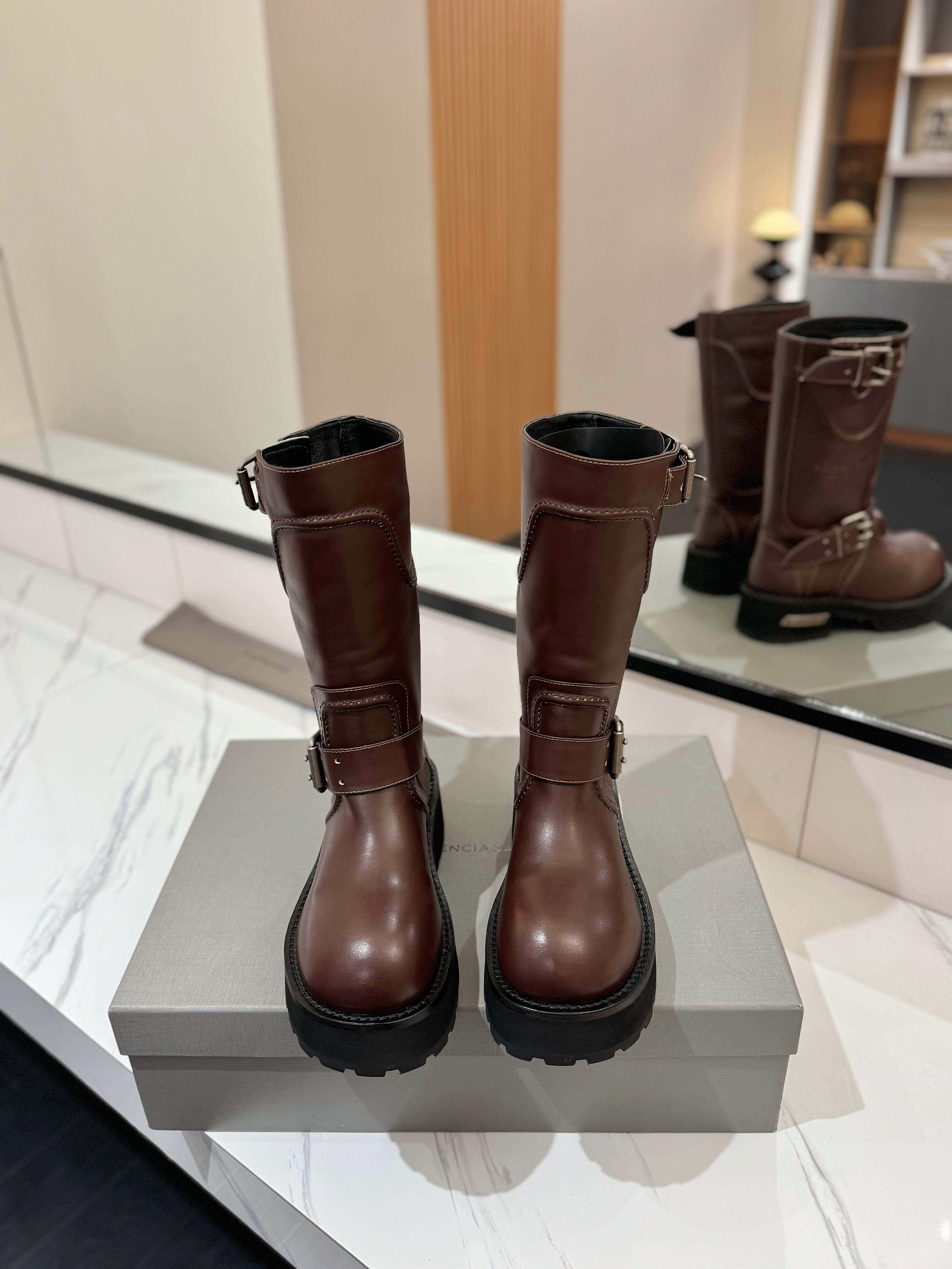 Balenciaga 25s buckled mid-calf boots brown calfskin 467614