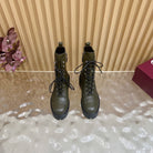 Gucci 2025 Boot Olive Green Black Embossed Cowhide 498050