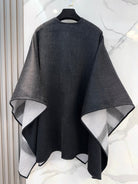 REVERSIBLE CHECK CASHMERE CAPE BLACK AND LIGHT GRAY 410135