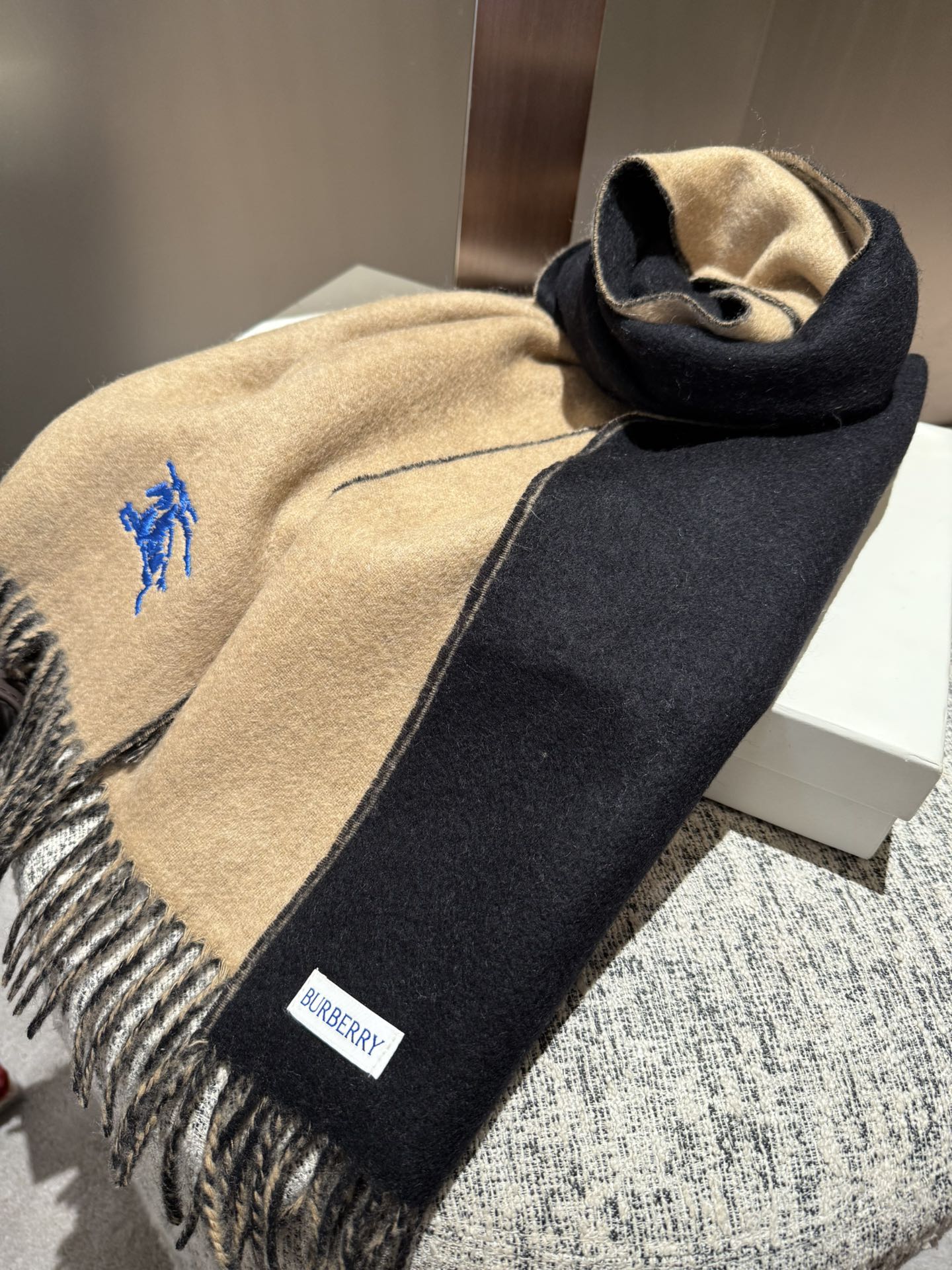 REVERSIBLE SCARF 180 CM IN BROWN MIX BLACK CASHMERE 407412