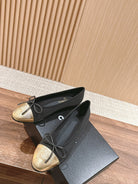ballet flat black grosgrain gold metalic lambskin