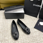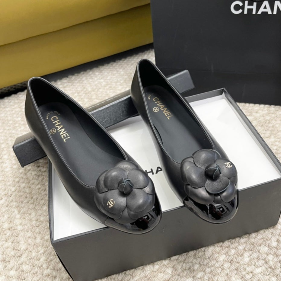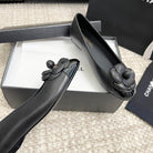 ballet flat flower black calfskin