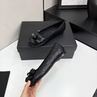 CC 25 Ballet Flat Flower Black Quilted Calfskin