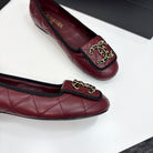 CC 25 Ballet Flat Large Logo Burgundy Quilted Calfskin