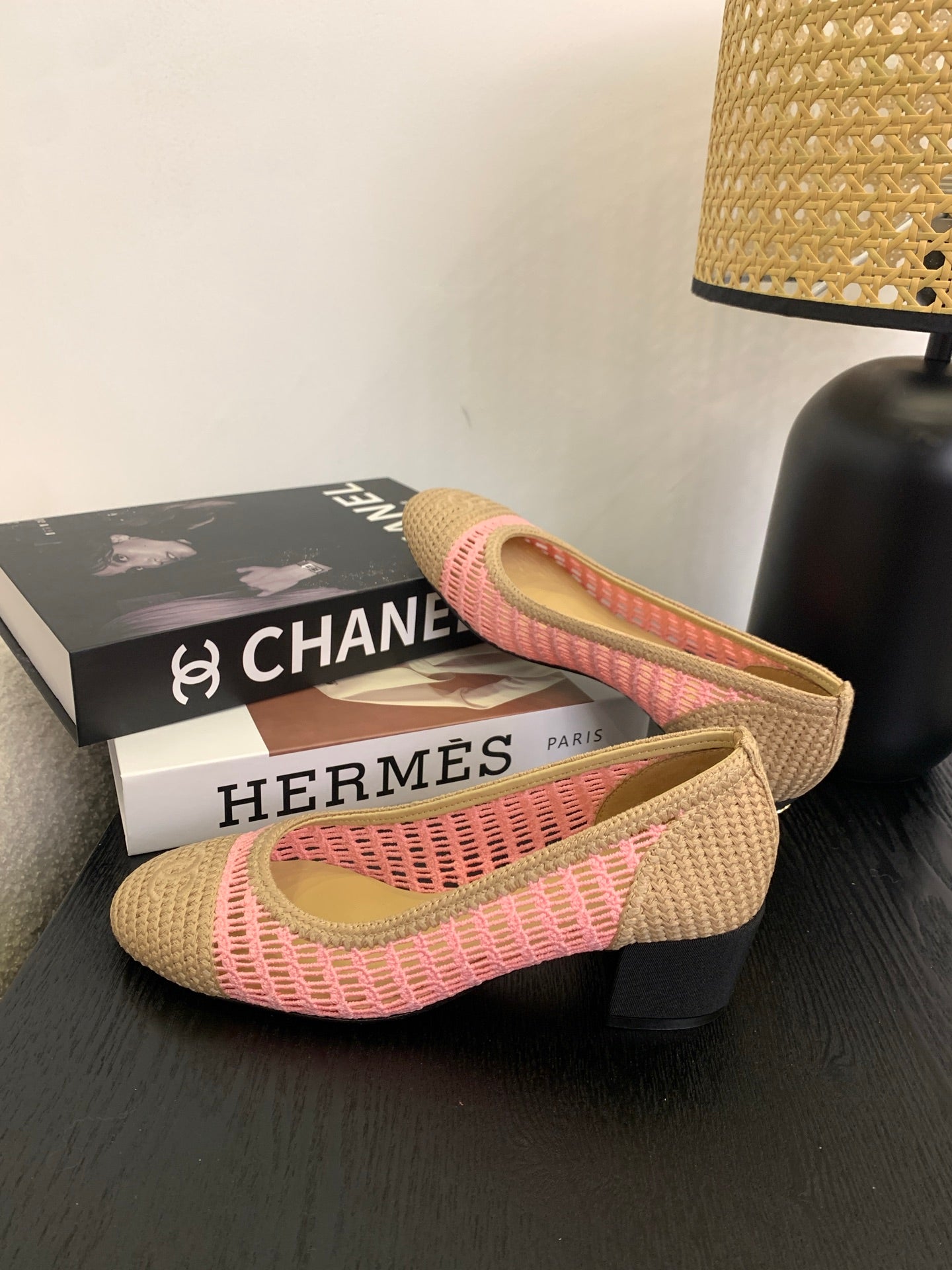 CC 25p Ballet Heel 50mm Pink Beige Raffia