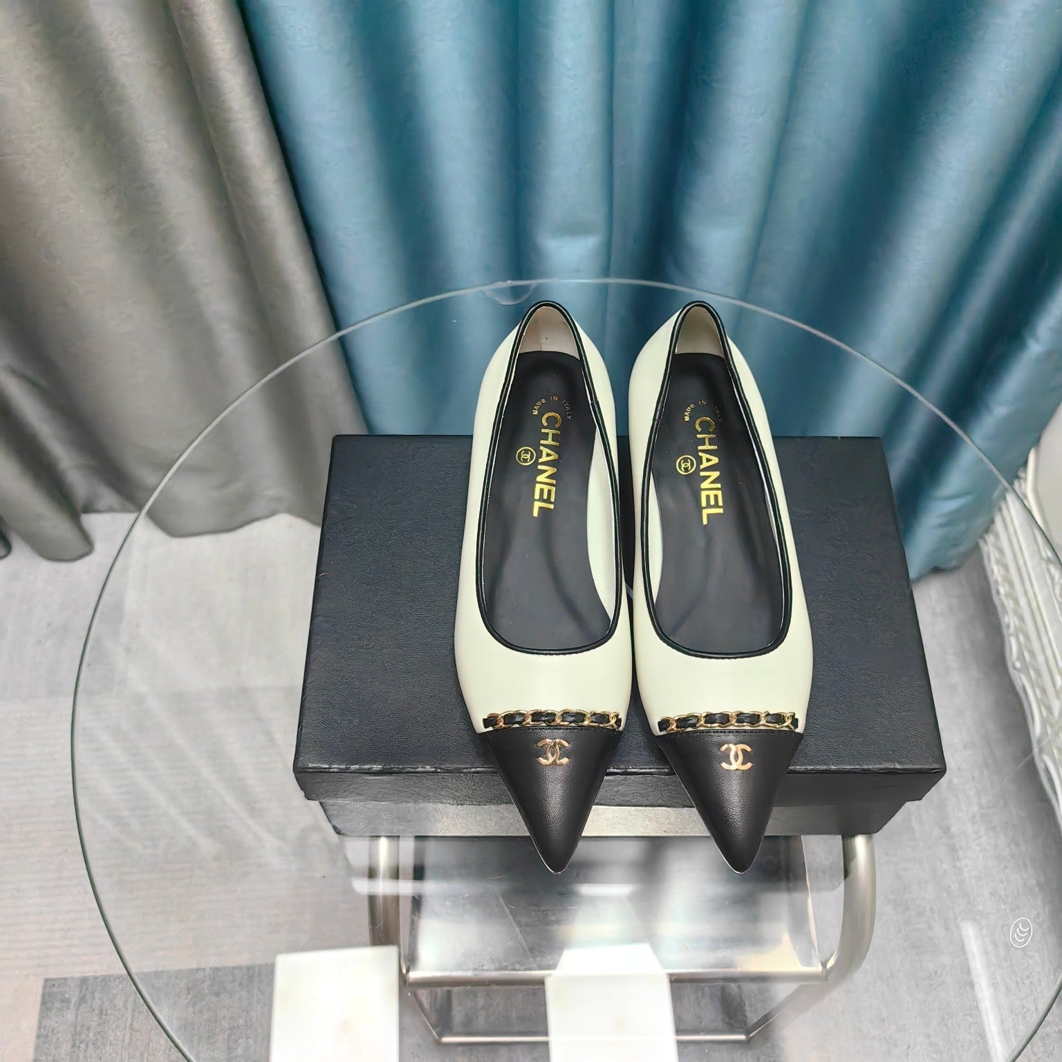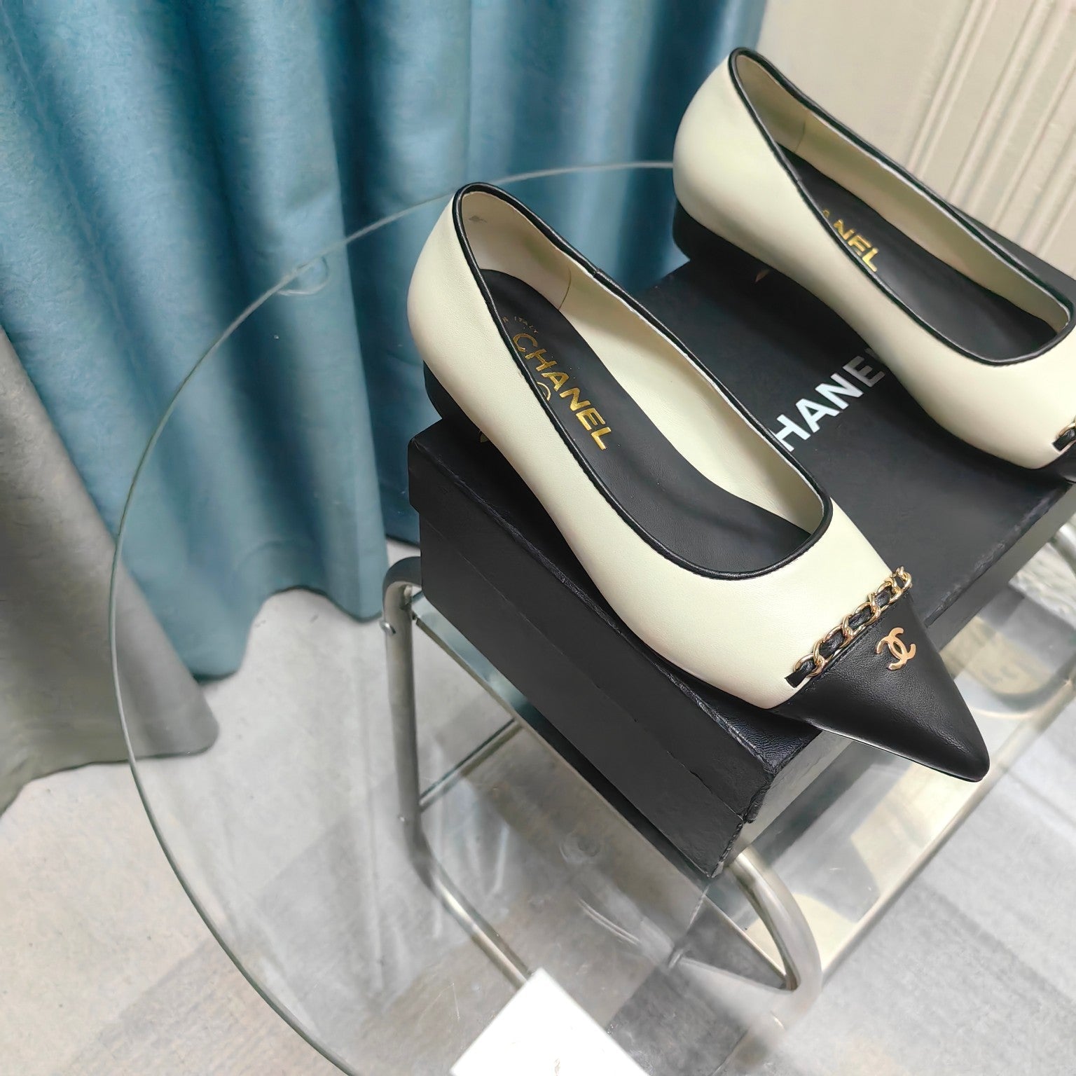 CC Ballet Flats White Chain Lambskin