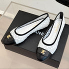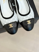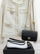 Chanel 25 Ballet Flat White Black Woven Lambskin 473057
