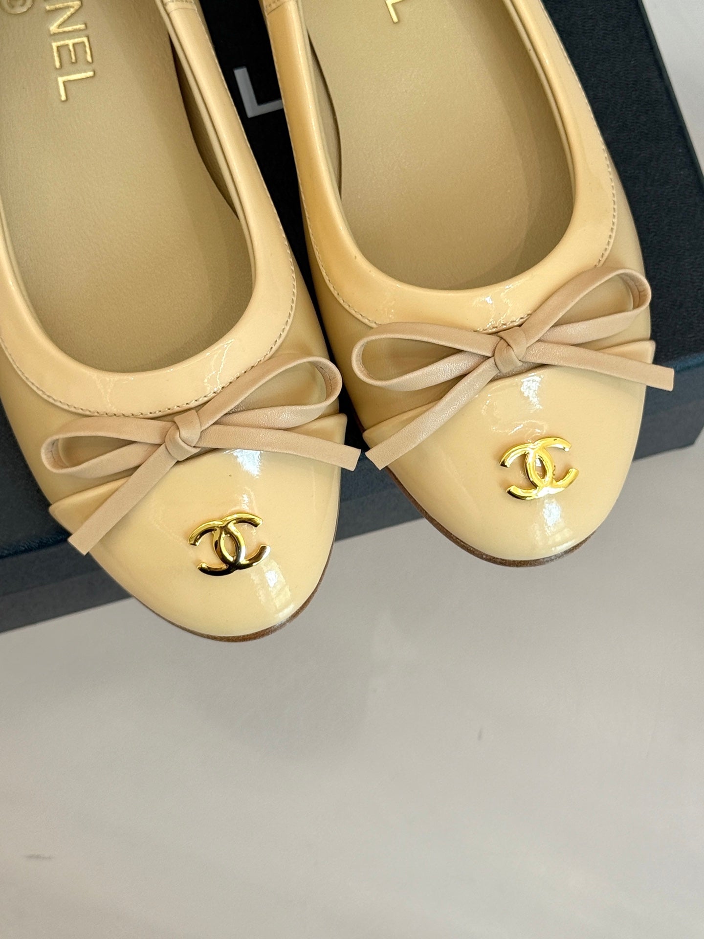 Chanel 25 Bowknot Ballet Flat Beige Sheepskin 473066