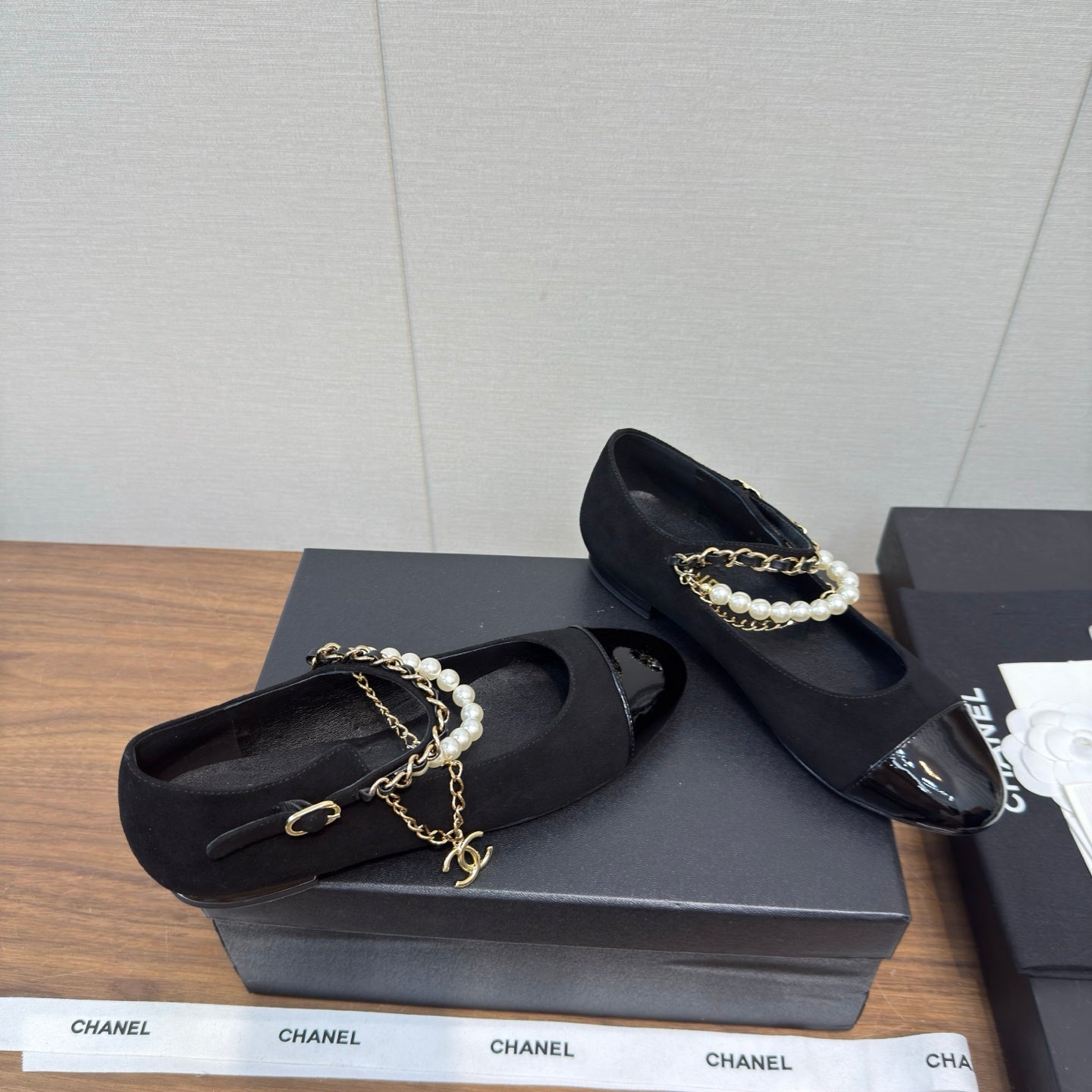 Chanel 25 Mary Jane Ankle Chain Ballet Flat black Suede Cowhide 465597