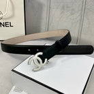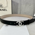 CC WOMEN'S BELT 3.0CM LEATHER BLACK BUCKLE SILVER