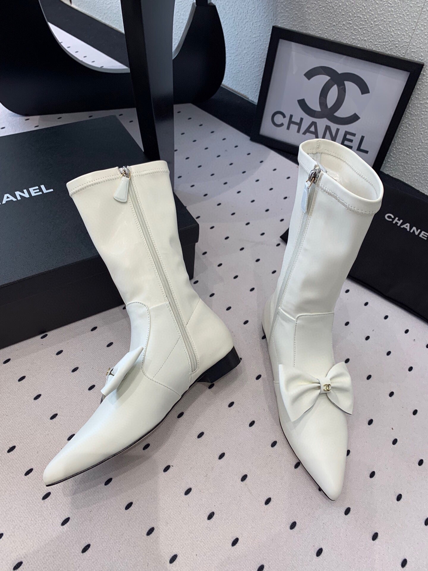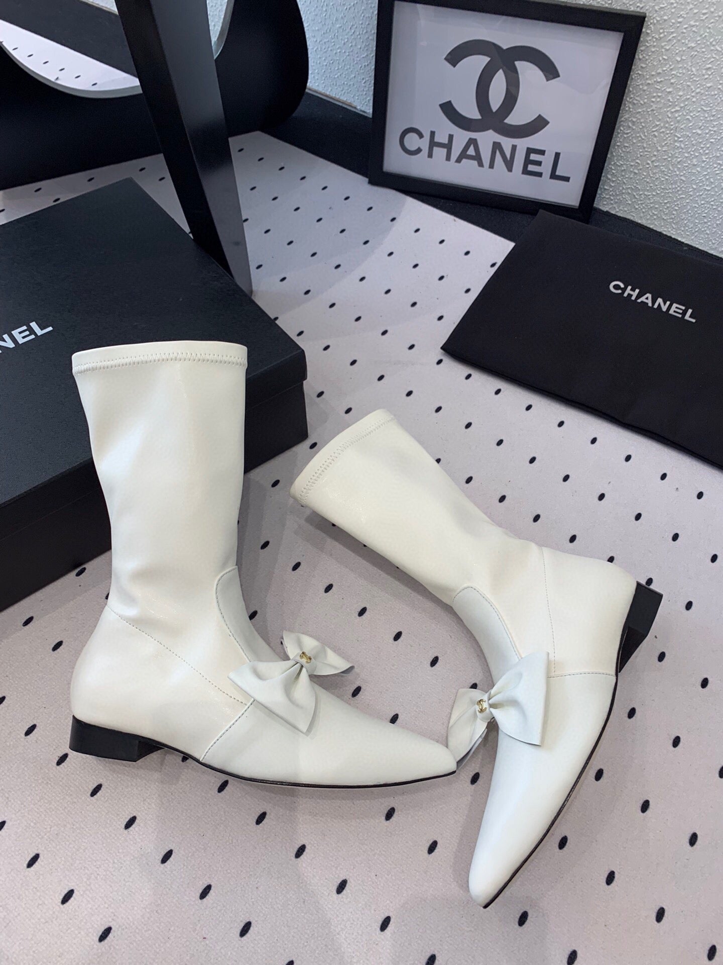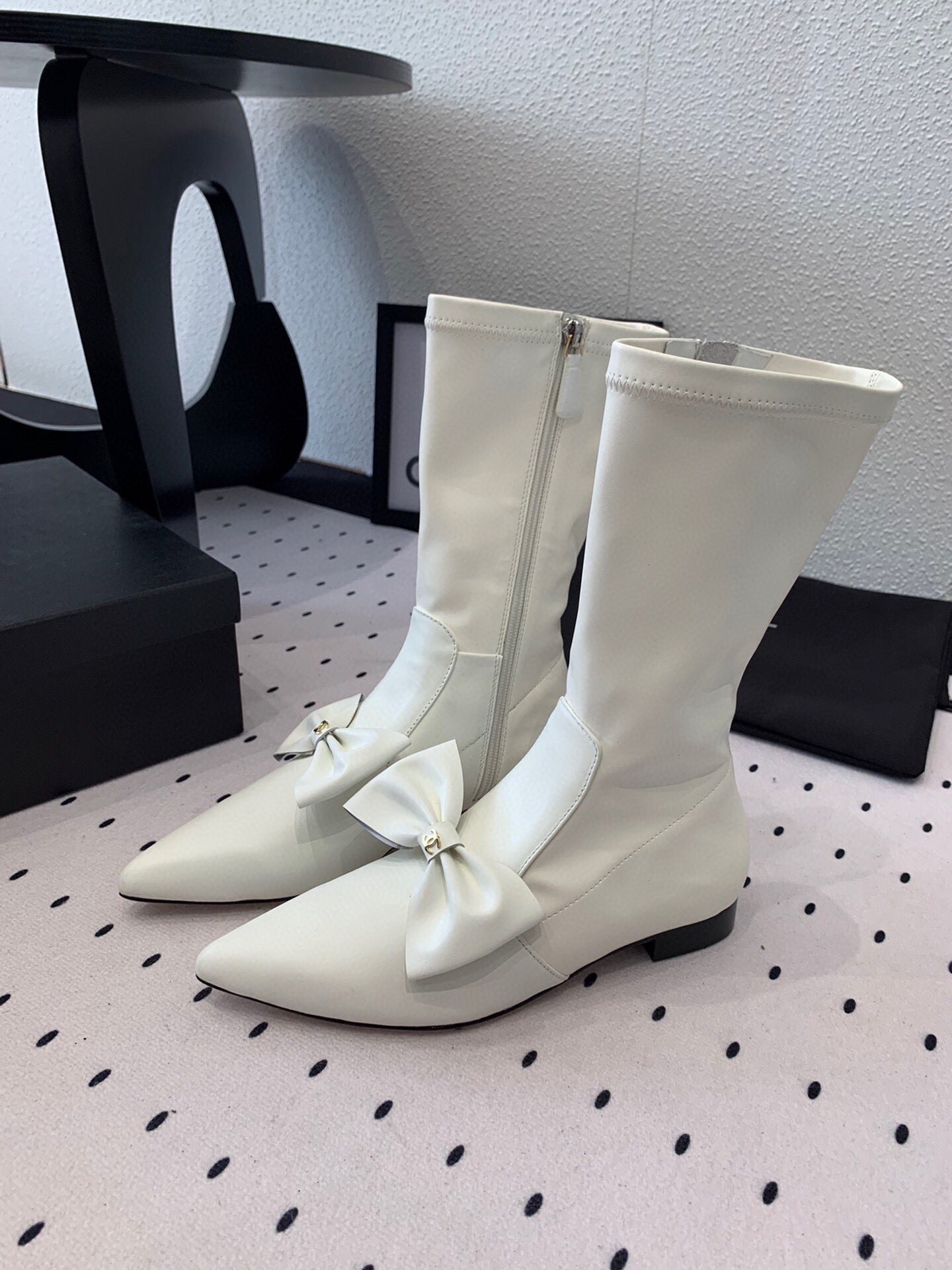 CC 25 Bow-knot Short Boot White Sheepskin 514064