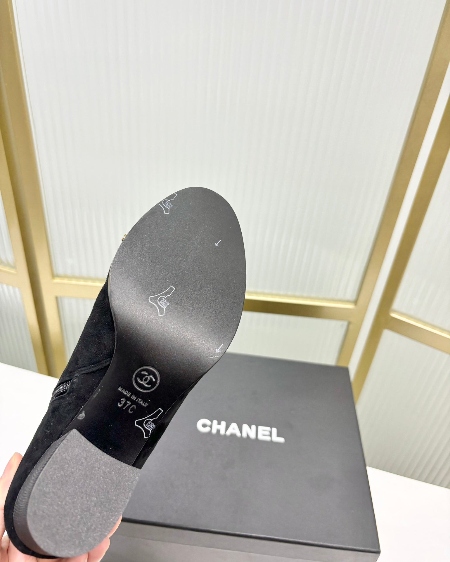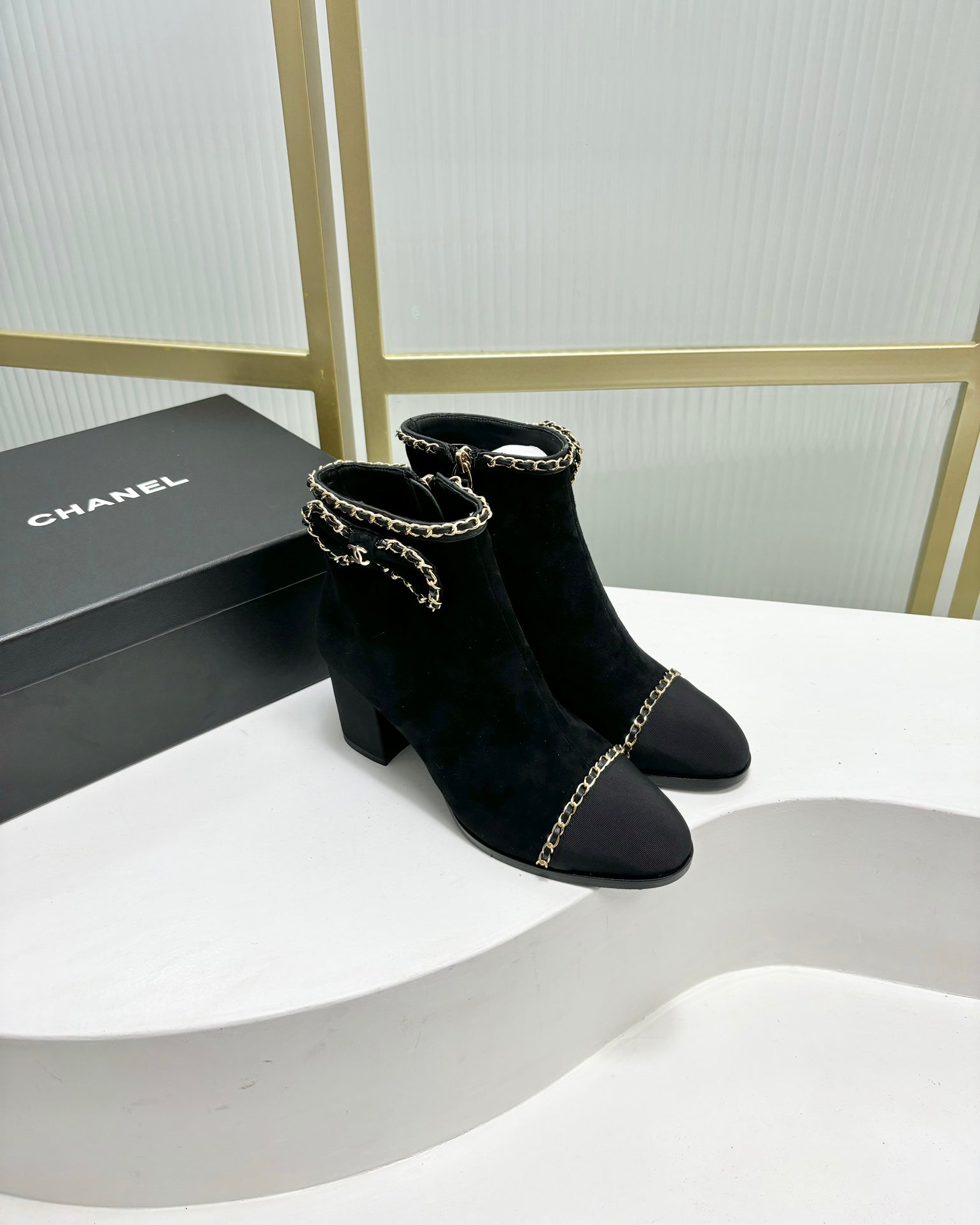 CC Ankle Boot 65 Black Suede Grosgrain Leather Strap