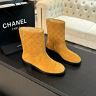 CC Ankle Boots 30mm Dark Yellow Suede Quilted