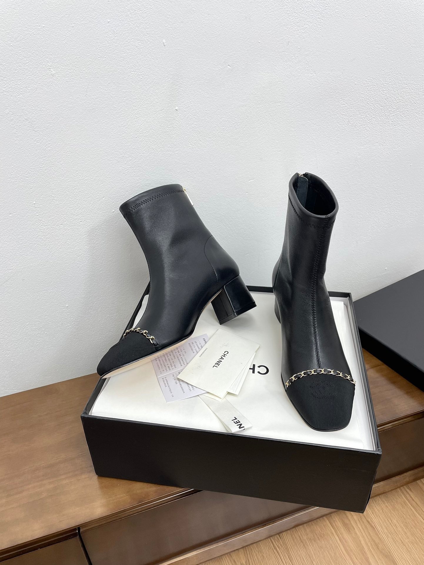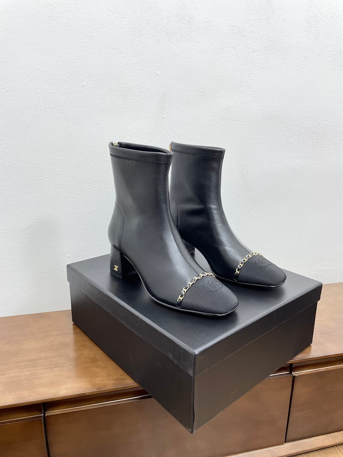 CC Ankle Boots 50mm Black Chain Lambskin