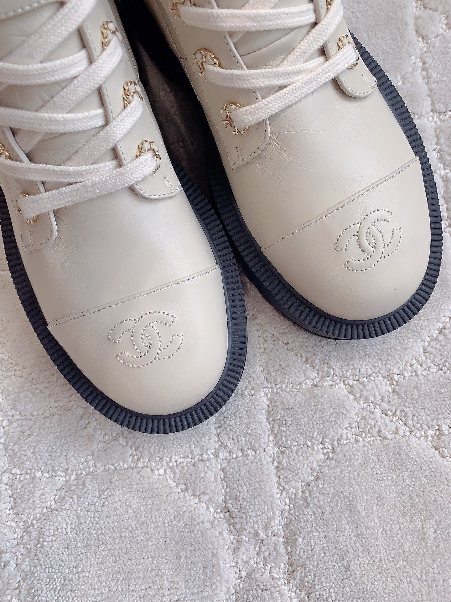 CC Ankle Boots In White Beige Wrinkled Calfskin 145489