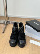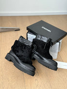 CC CHUNKY BOOTS IN BLACK SMOOTH FLEECE AND CALFSKIN