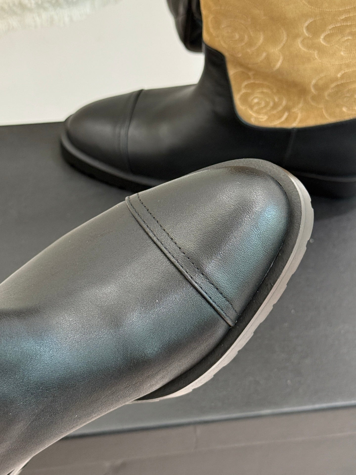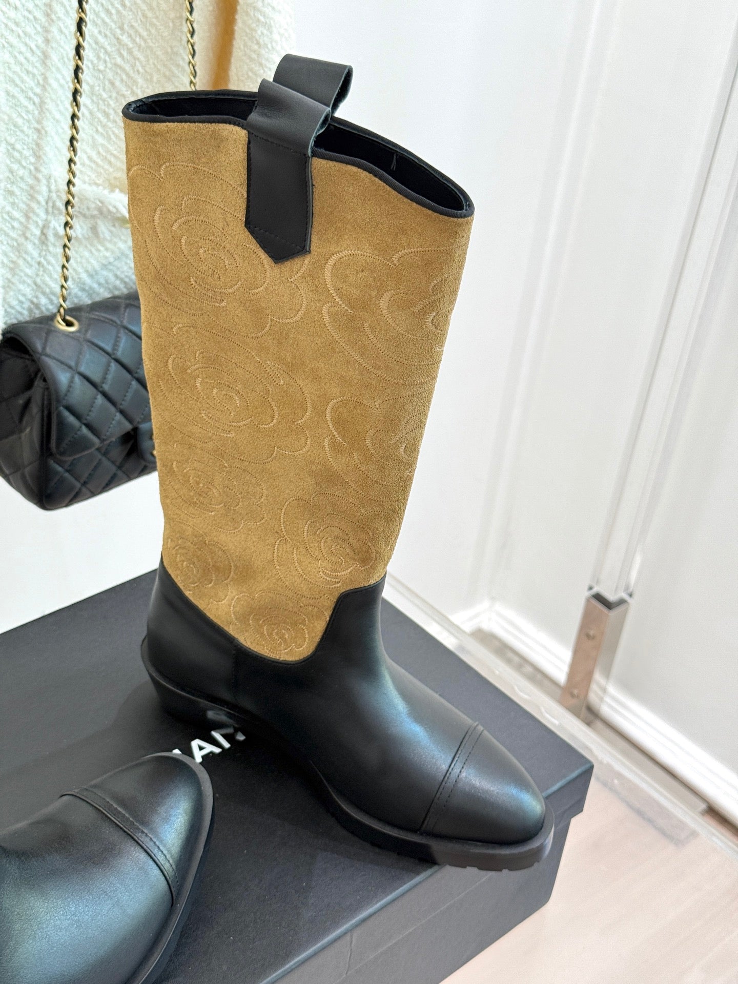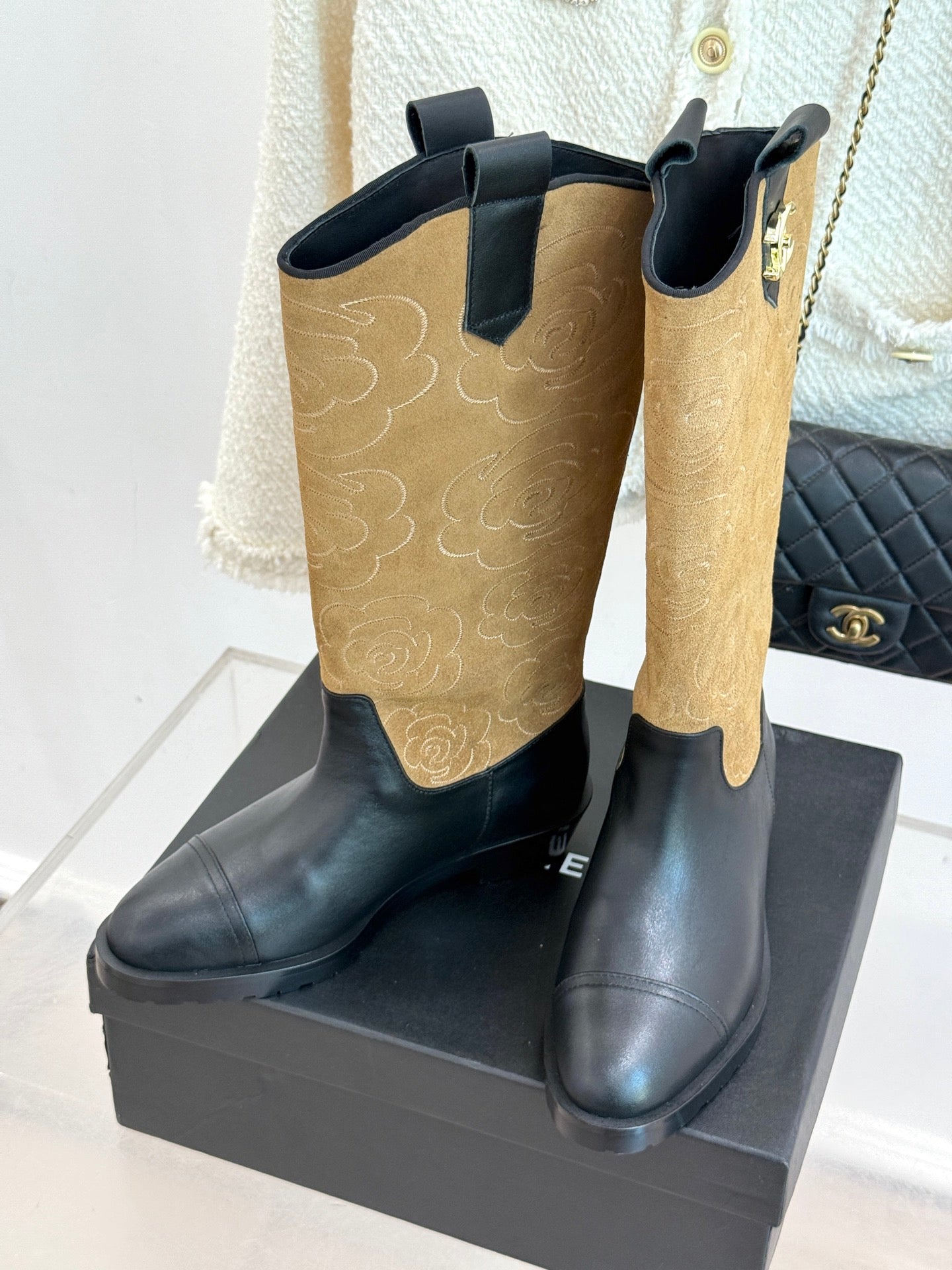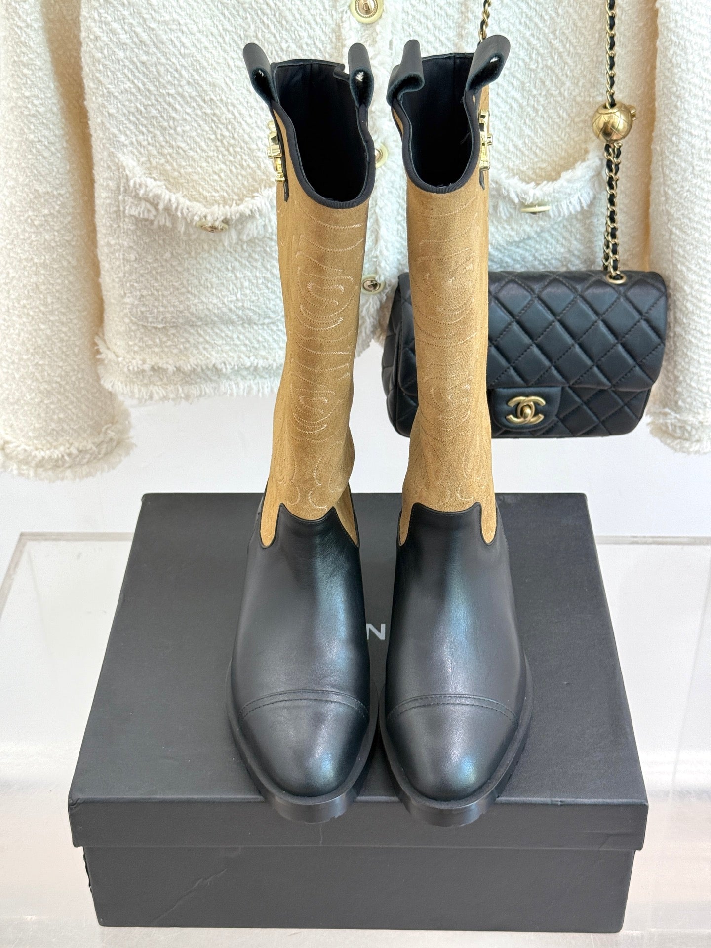 CC cowboy mid-calf boots black brown sheepskin suede 511983