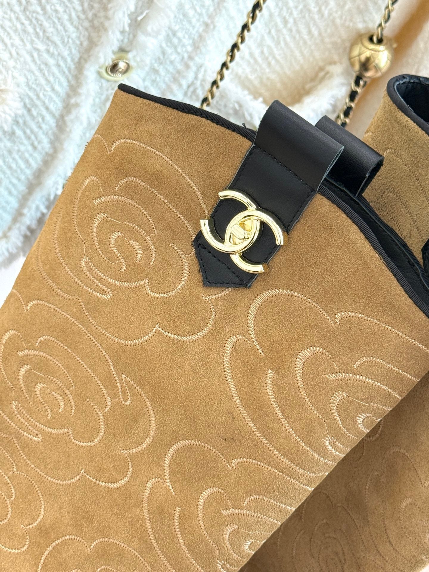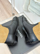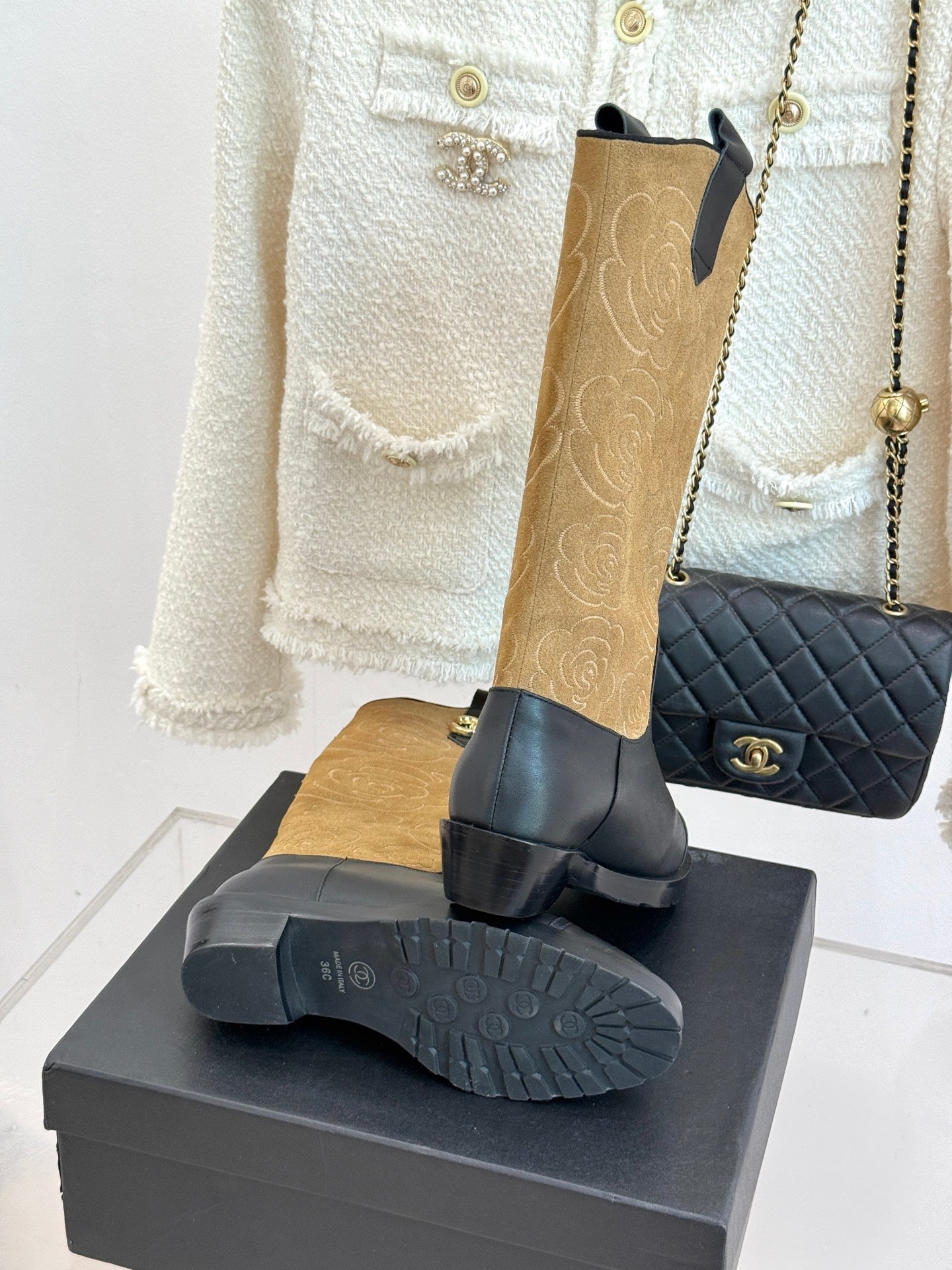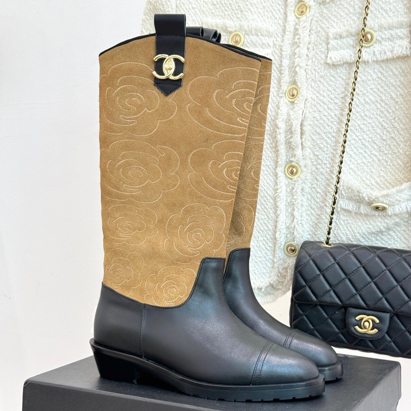 CC cowboy mid-calf boots black brown sheepskin suede 511983