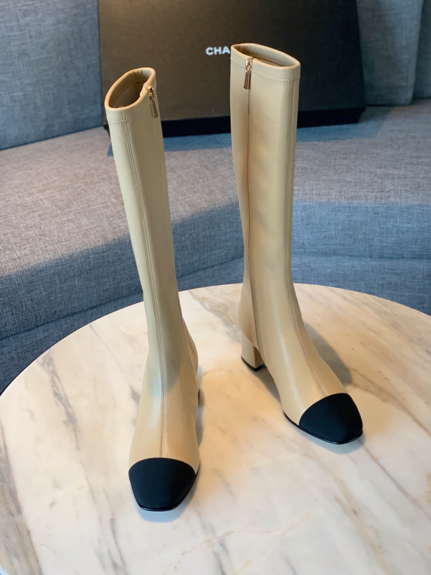 CC High Boots 50mm In Beige Black Lambskin And Lycra Fabric 940064