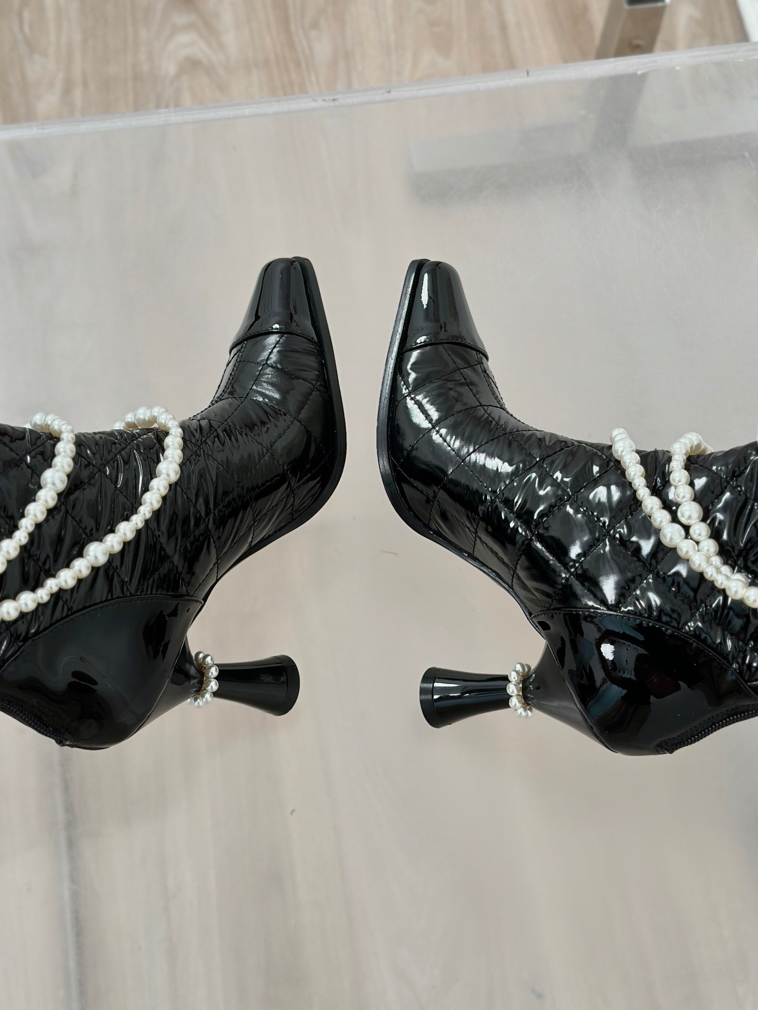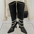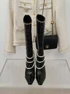 CC High Boots 80mm Glossy Black Wrinkled Quilted Calfskin