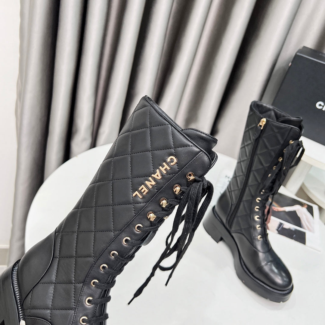 CC High Boots 60mm Black Quilted Lambskin And Cowhide