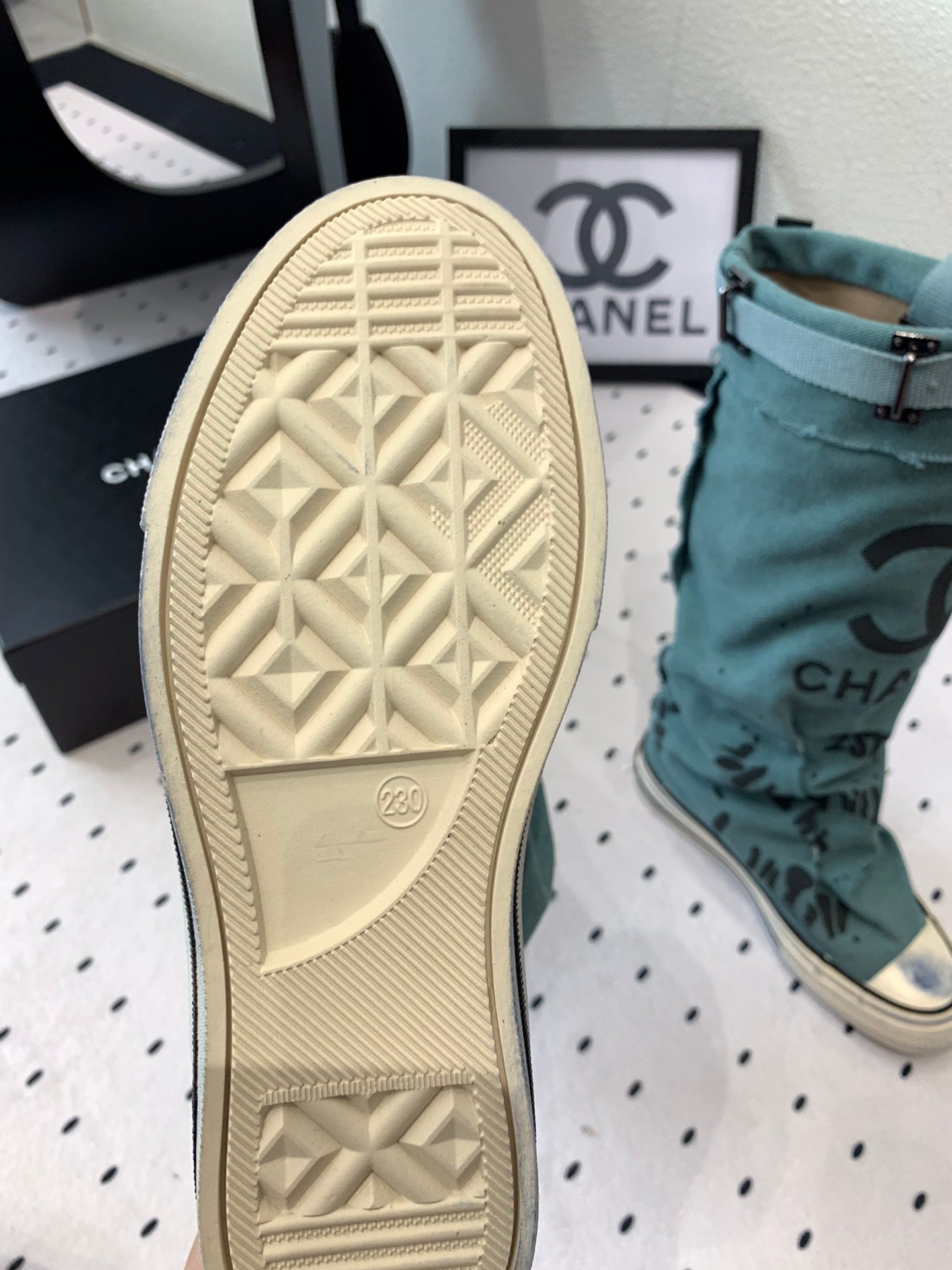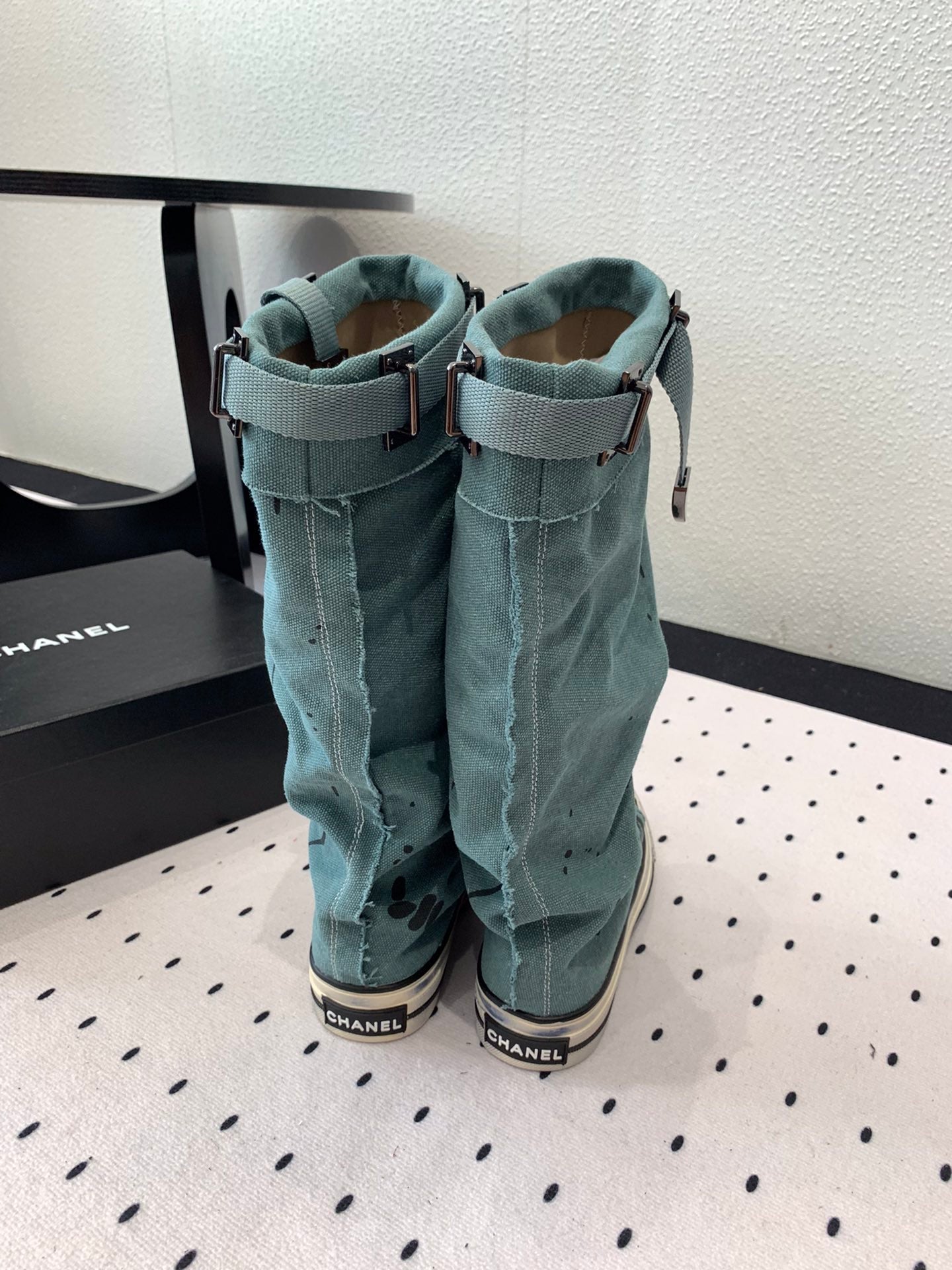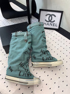 CC High-Top Canvas Boots Turquoise Black Denim Fabric 938047